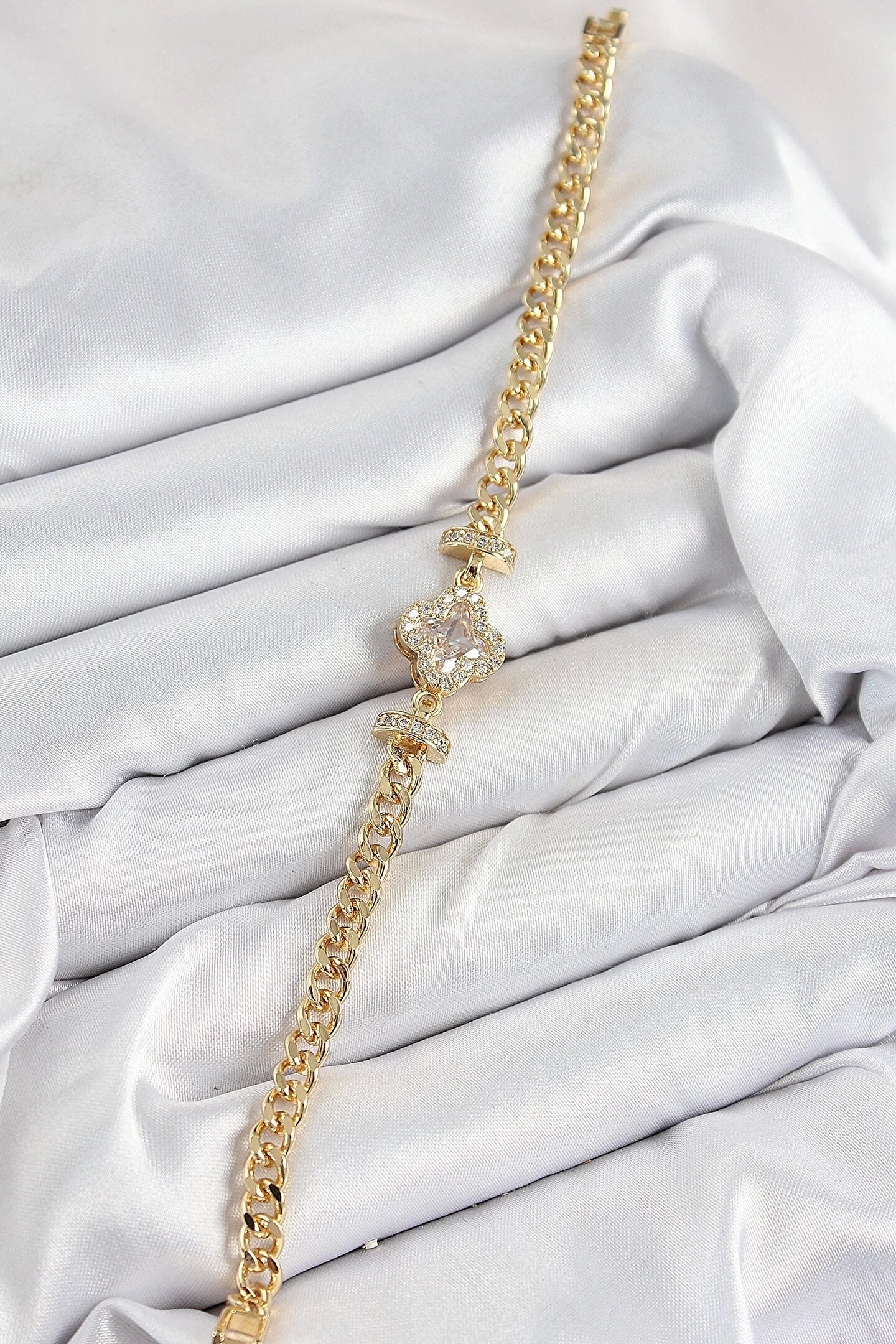 Clariss Pirinç Zirkon Taşlı Yonca Model Gold Renk Kadın Bileklik