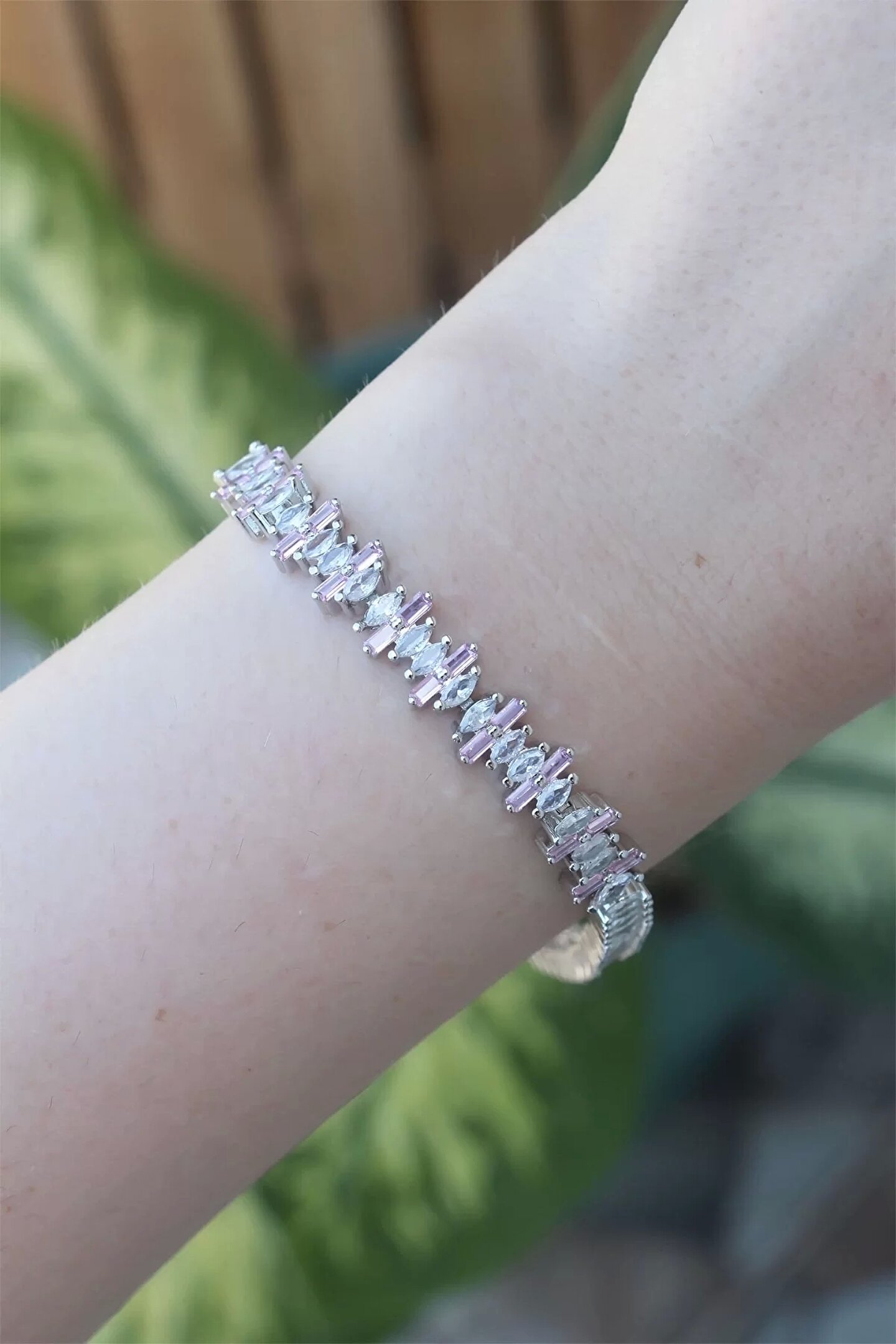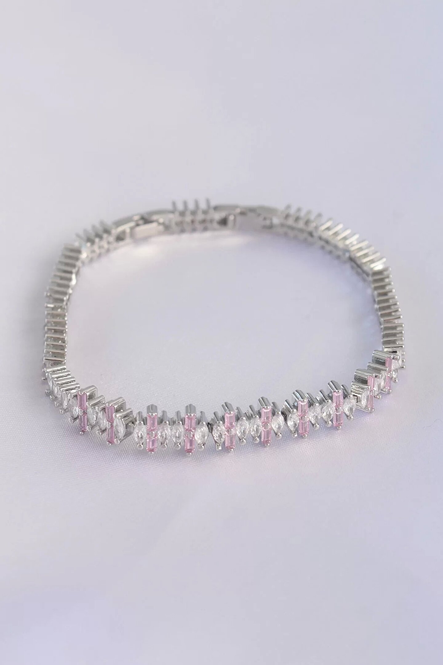 Clariss Vip Seri Pirinç Pembe Zirkon Taşlı Gümüş Renk Baget Model Bileklik