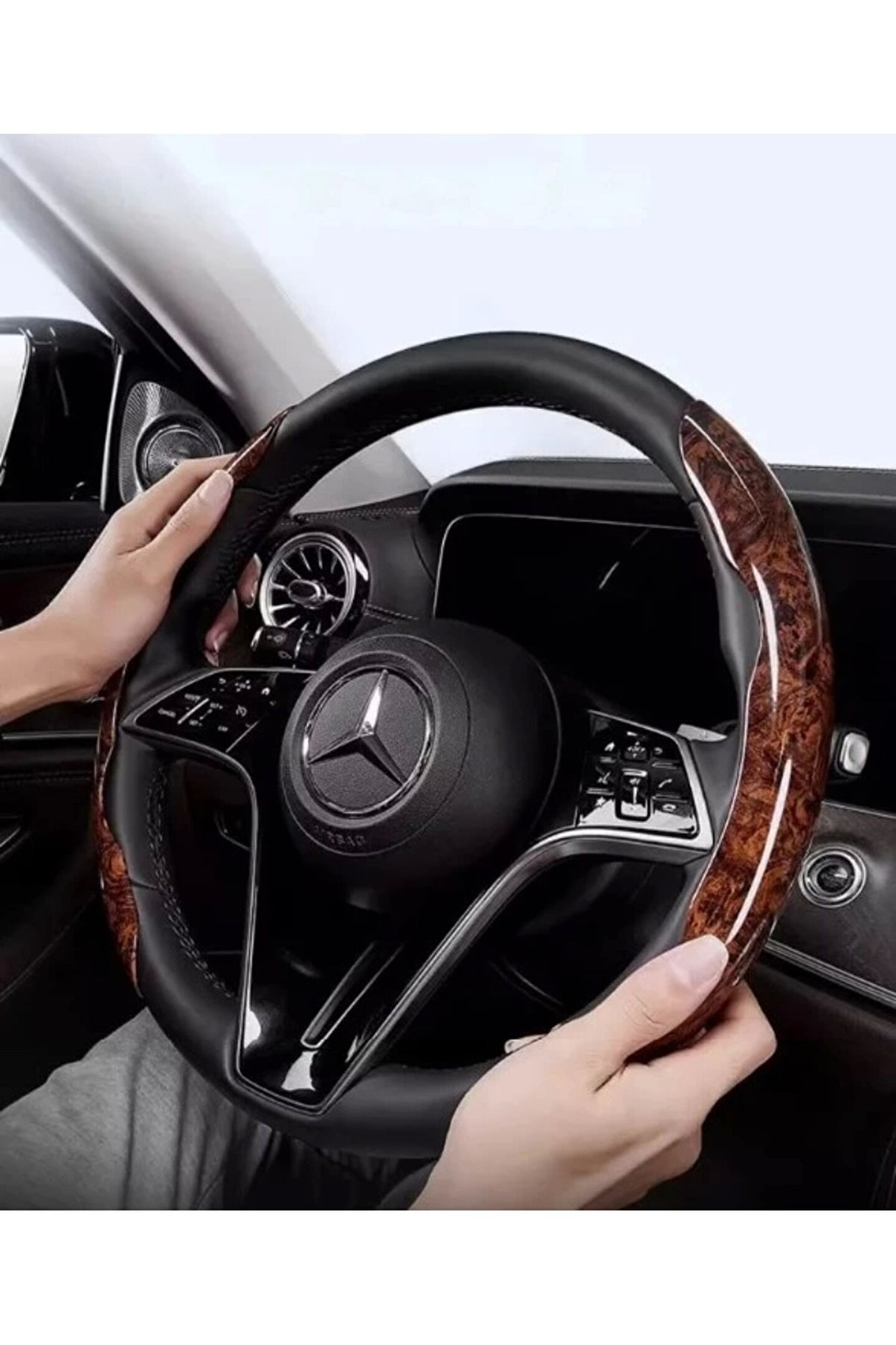 Ahşap Tasarımlı Direksiyon Simidi Koruma Kılıfı 2 li