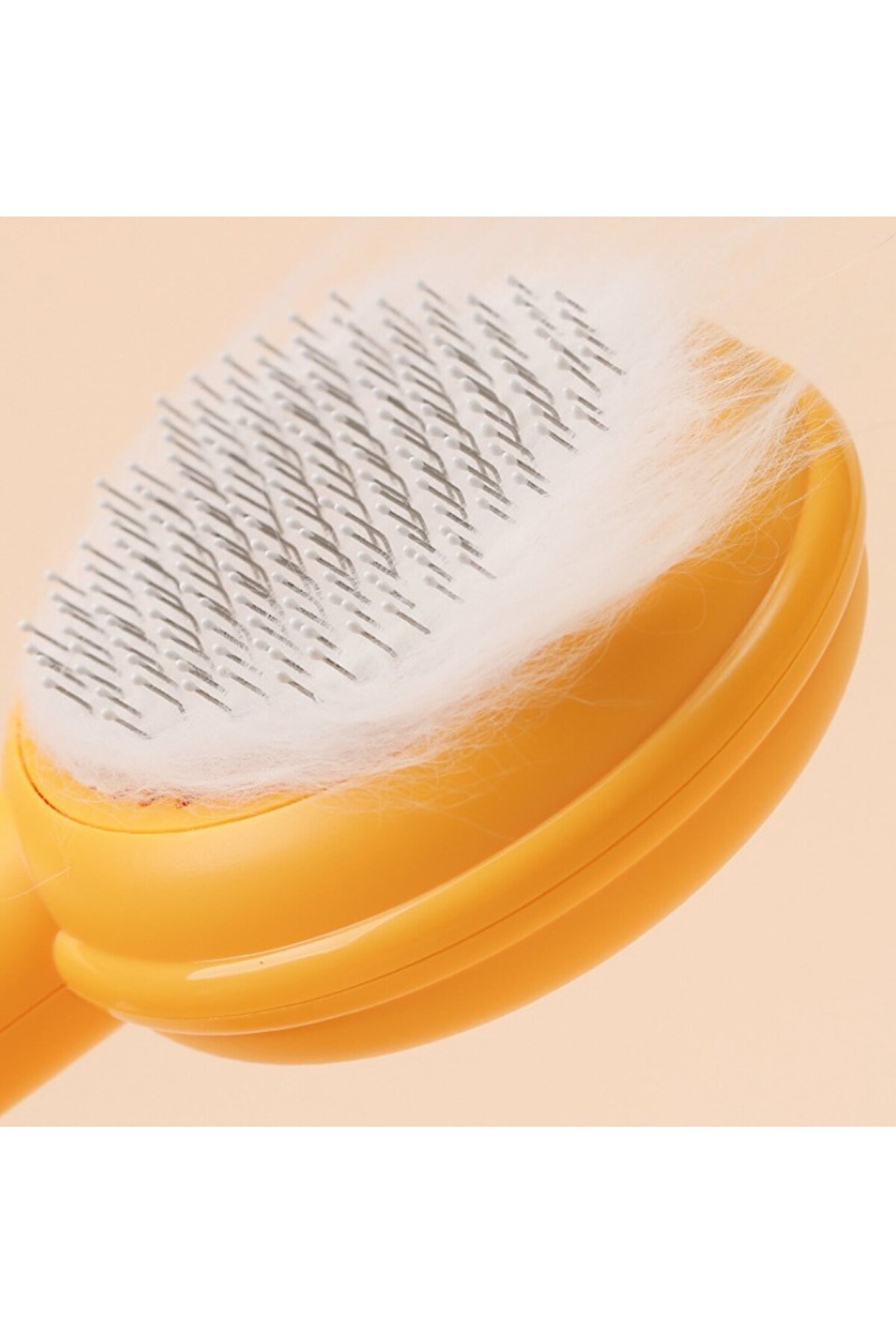 Tek Tuşla Kolay Temizlik: Tarağın arkasındaki düğmeye bastığınızda, toplanan tüyler saniyeler içinde yüzeye itilir ve tek hamlede temizlenir.
