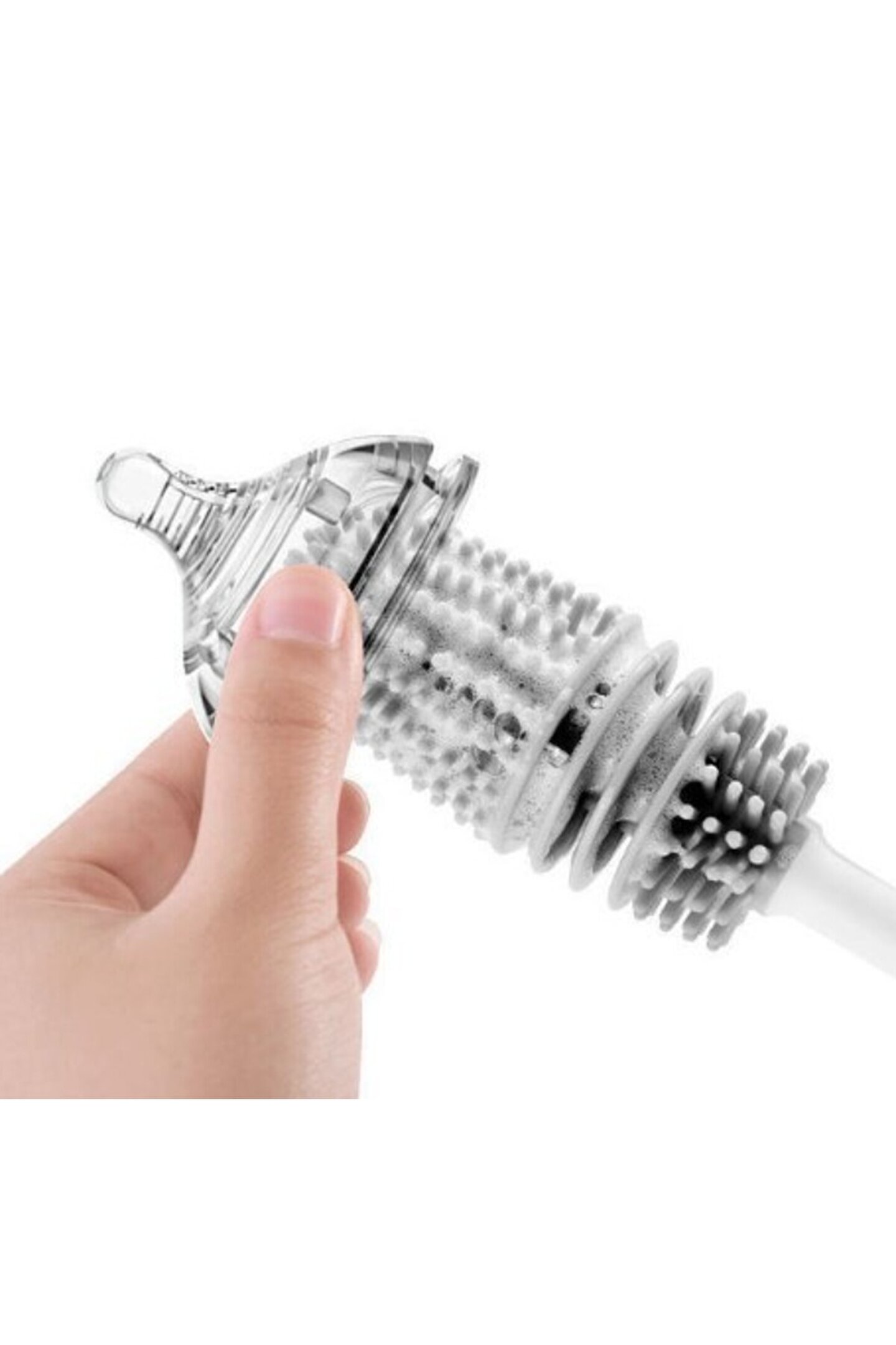 • Fırça, güçlü uygulanabilirliği ile süt şişeleri, dar bardakları, termoslar ve vazolar gibi dar girişli eşyalar için uygundur