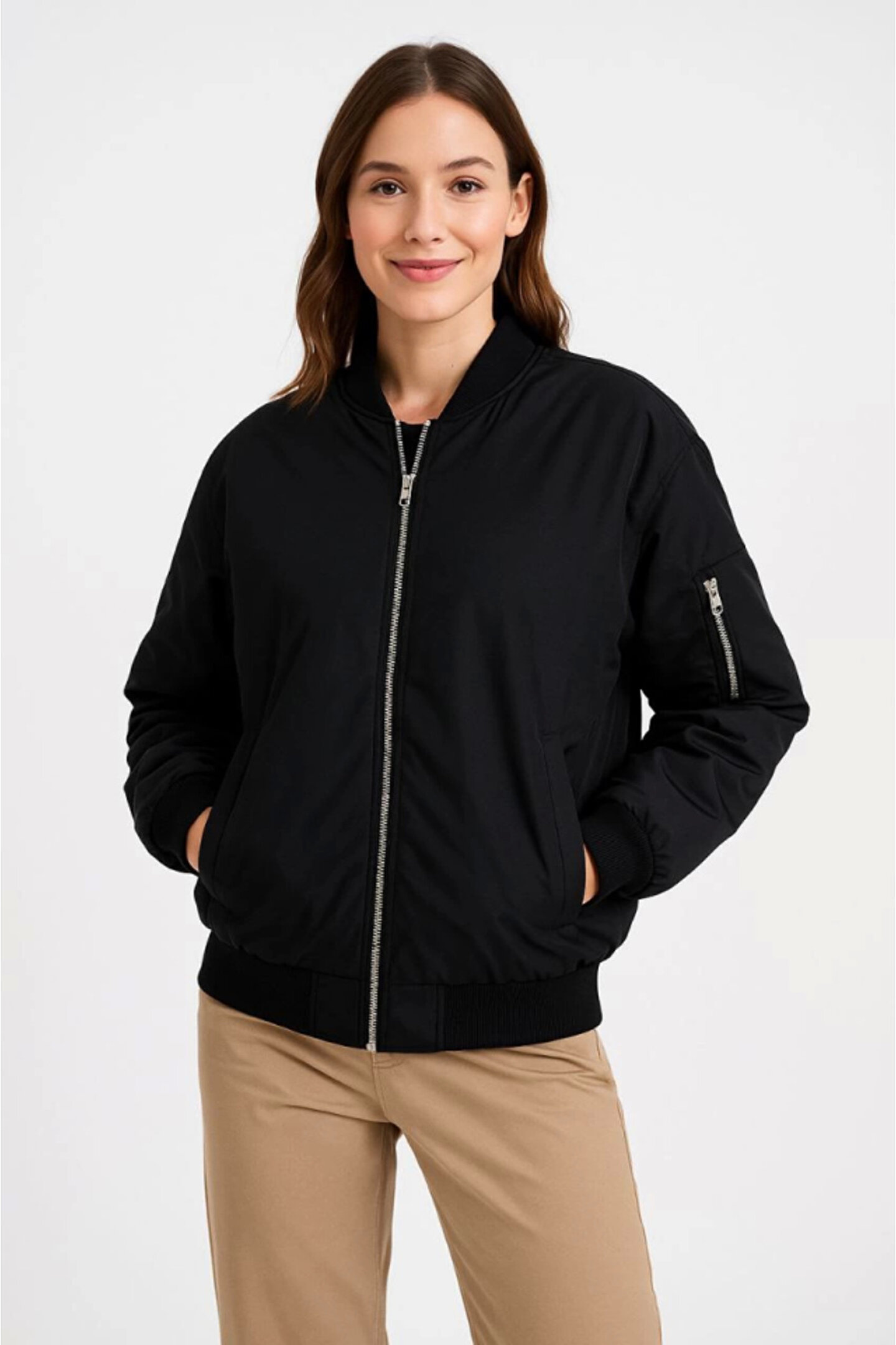 Içi Astarlı Fermuarlı Bomber Mont Ceket - Siyah
