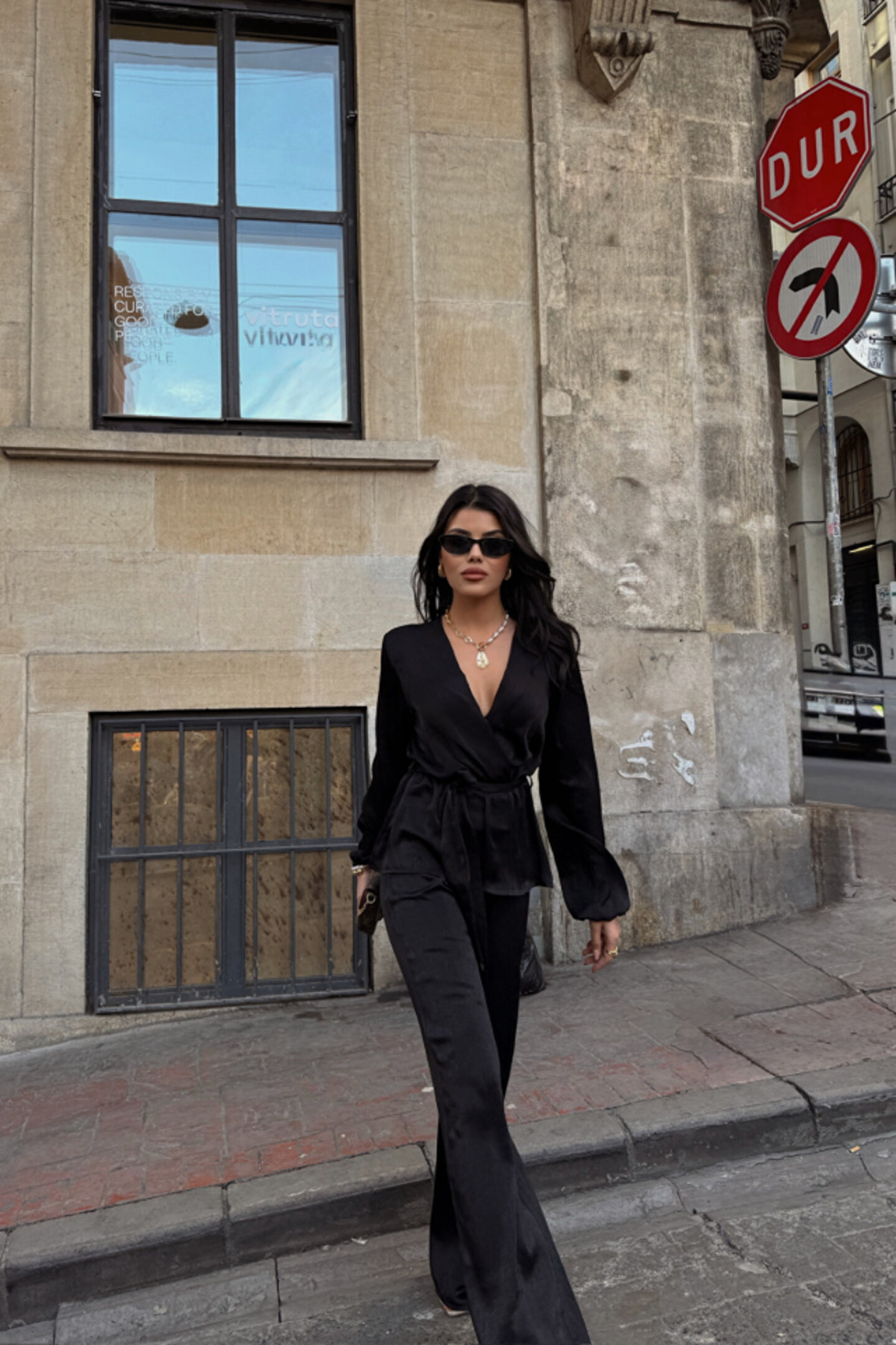 COjans eyesof SATEN KRUVAZE BAĞLAMALI BLUZ- PANTOLON TAKIM - Siyah