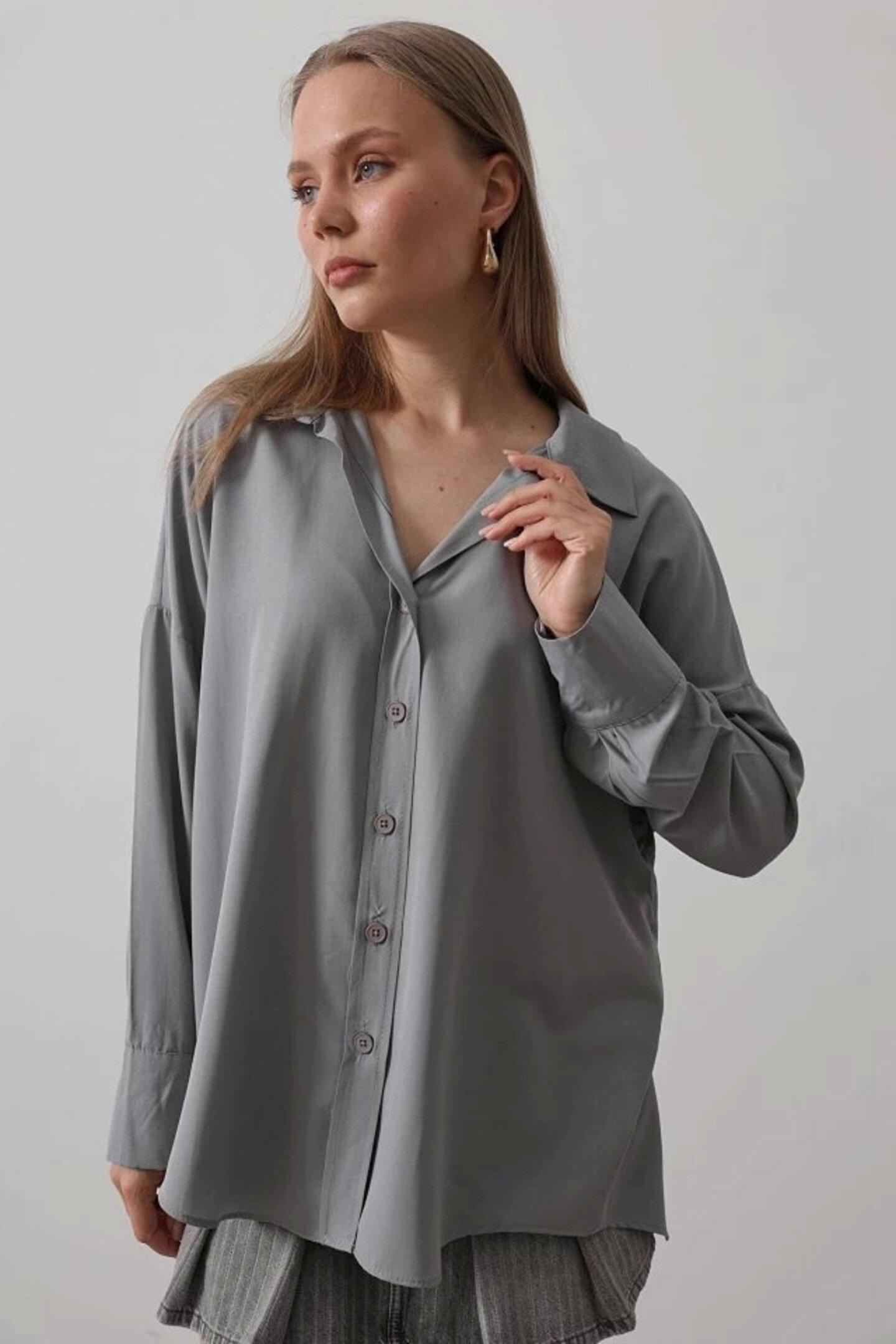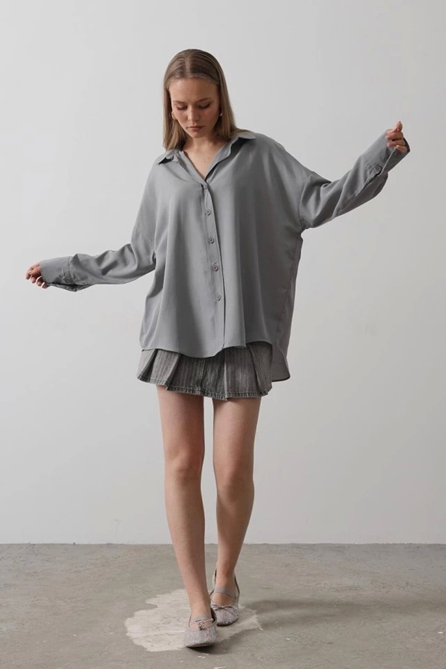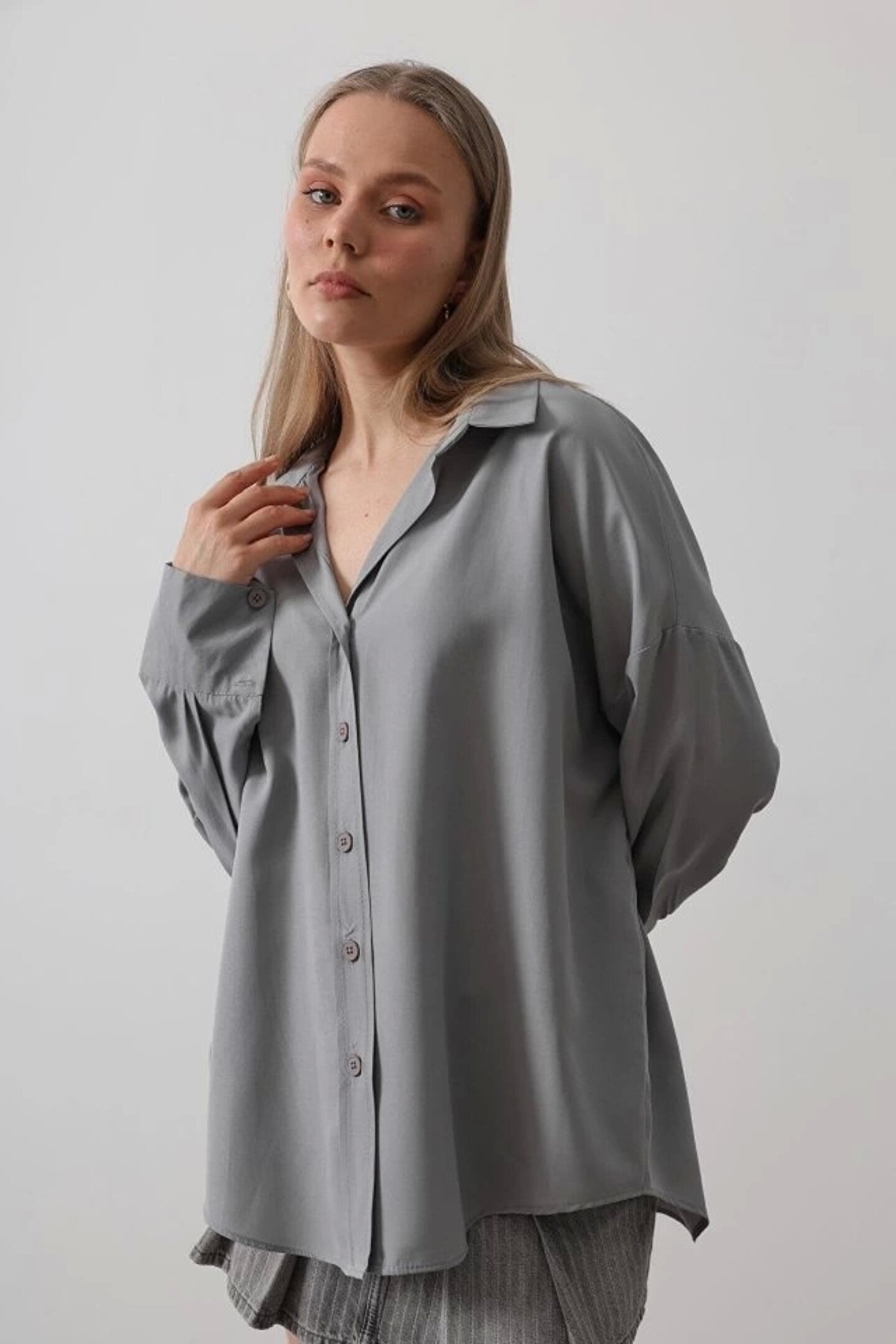 Geniş Manşet Detaylı Gömlek - Gri Siparişleriniz özenle bir şekilde hazırlanılıp 24 saat içerisinde kargoya verilmektedir.; kargo firması olarak ile çalışmaktayız.; siparişinizi oluşturduktan sonra 1-4 gün içerisinde ürünleriniz elinize ulaşmış olacaktır.; Özel ve sıradışı tasarım ürünlerimiz, yaşamınıza benzersiz bir çekicilik ve tarz katacak.; Günlük hayatta giyim üzeri vücut aksesuarı gibi kullanabileceğiniz özel parçalar sunuyoruz.; Bu ürünlerle kendinizi özgürce ifade edebilir, kişisel tarzınızı ön plana çıkarabilirsiniz.; Her biri özenle seçilmiş, yüksek kaliteli malzemelerle üretilmiş olan tasarımlarımız, özel yaşamınızda da dikkat çekici detaylar sunar.; Göz alıcı ve çekici olmalarının yanı sıra, konfor ve kullanışlılık da sağlamak için özen gösteriyoruz.; Gündelik hayatta şıklığınızı tamamlamanın yanı sıra özel anlarınızda da kendinizi özel hissetmenizi sağlayacak ürünlerimiz, sizin tarzınızı ve zevkinizi yansıtmak için özel olarak tasarlanmıştır.; Asmirayı keşfedin ve tarzınızı yansıtan özel parçalarla kendinizi ifade etmenin keyfini çıkarın!