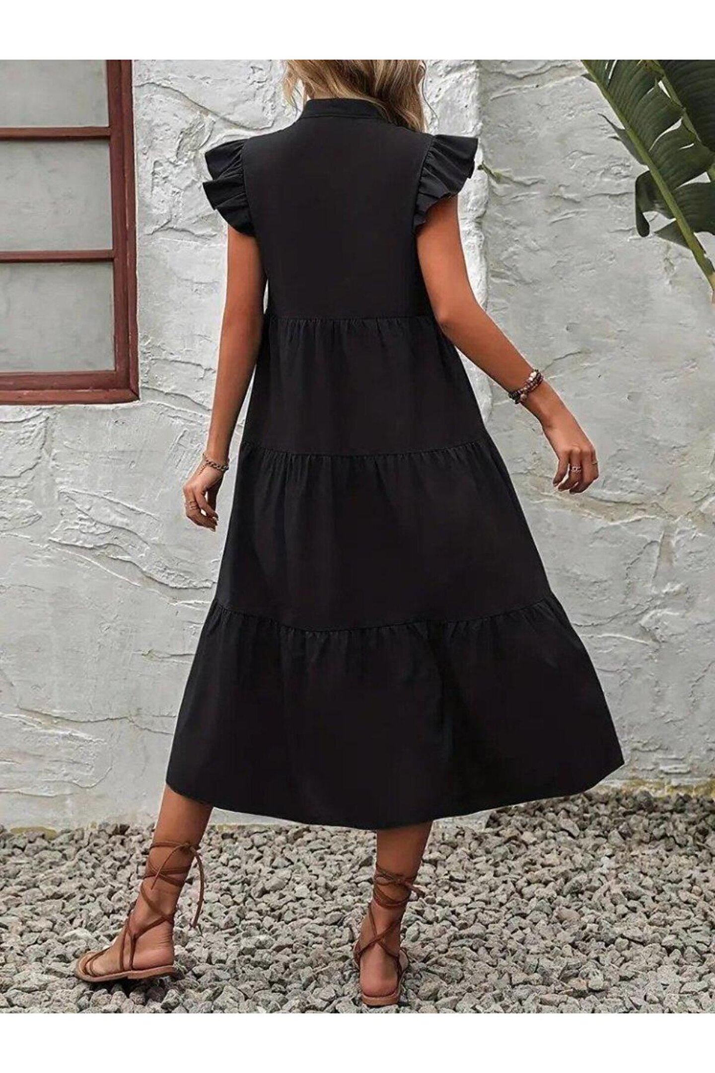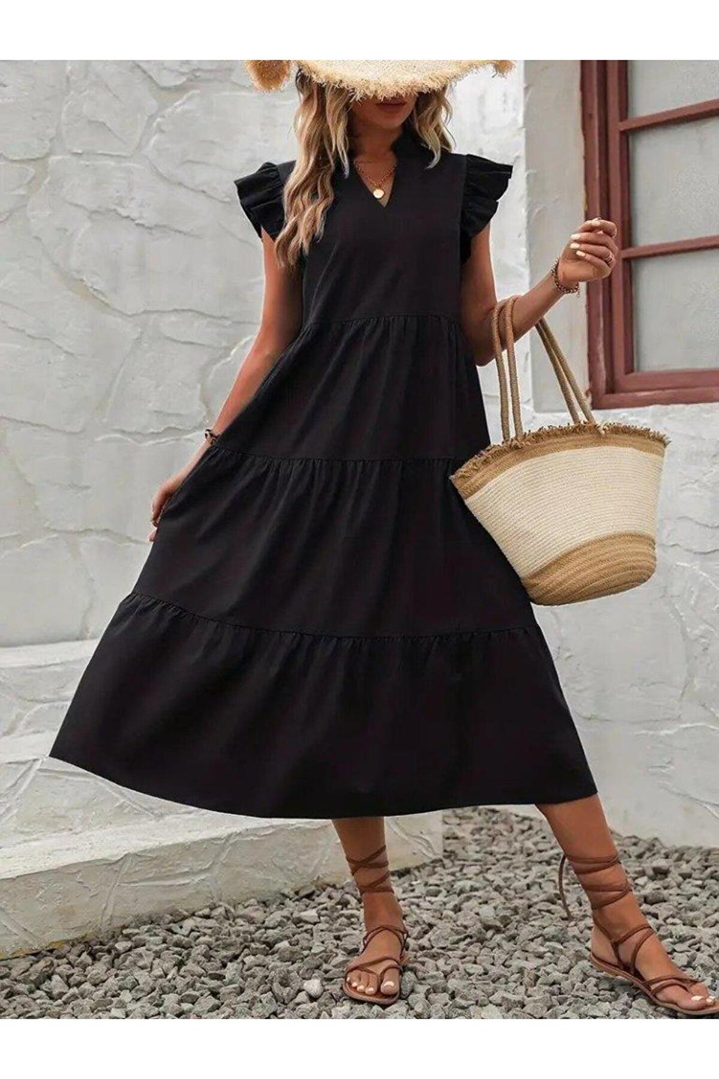COjans Kadın Kısa Kollu V Yakalı Geniş Kesim Uzun Trikoton Elbise