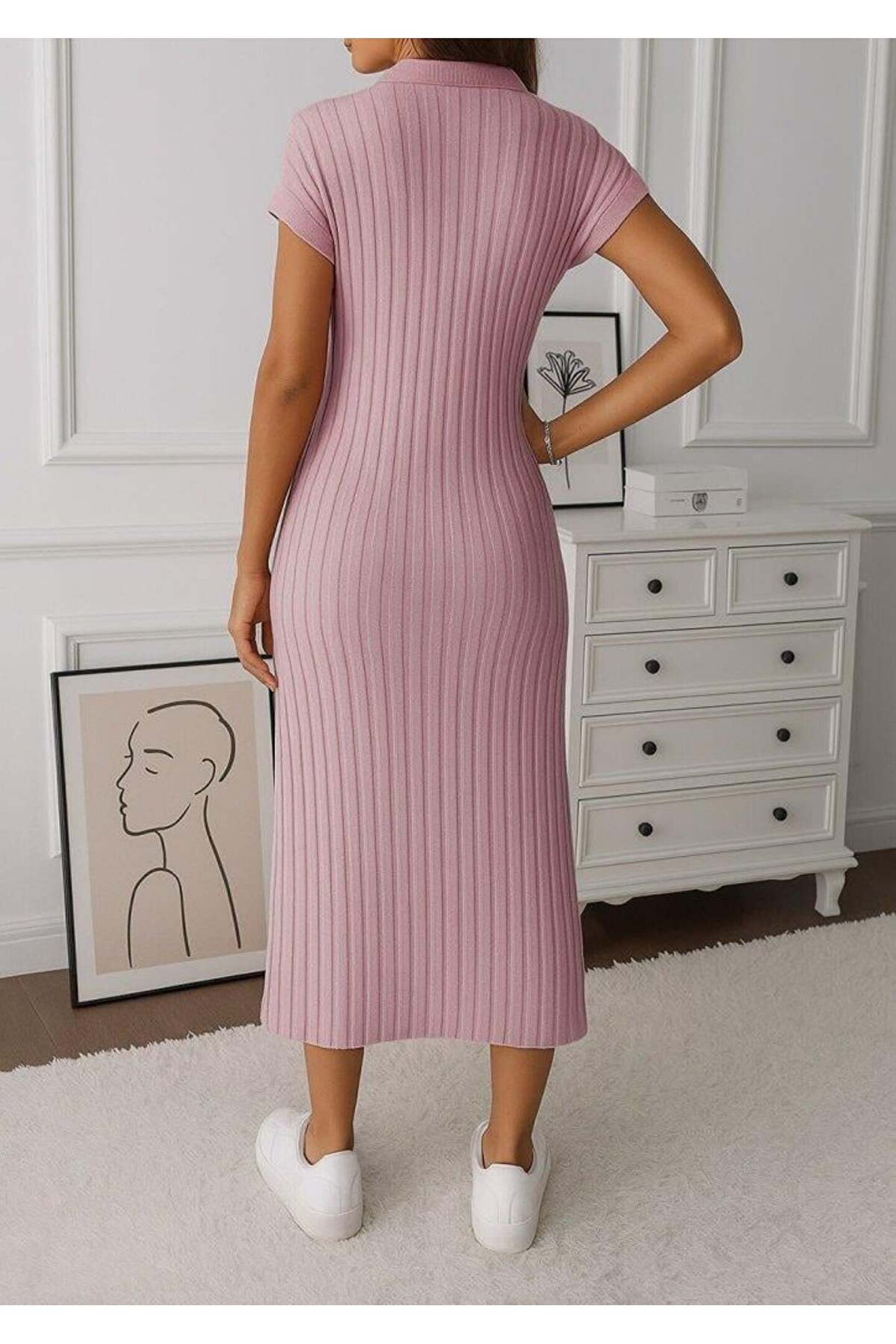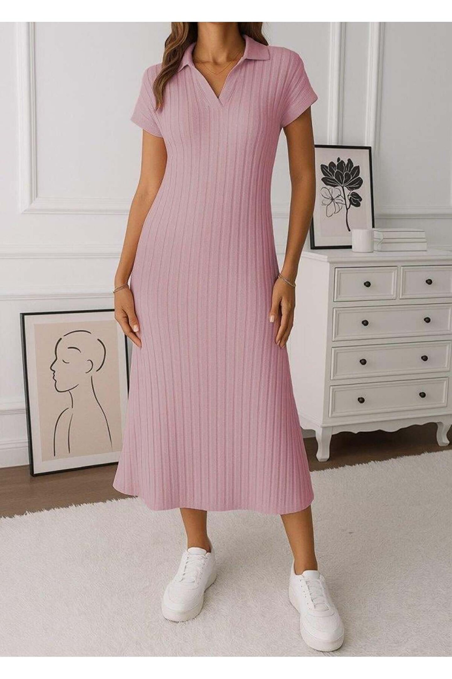 Kadın Kısa Kollu Yakalı Yandan Yırtmaçlı Kalın Fitilli Kaşkorse Elbise