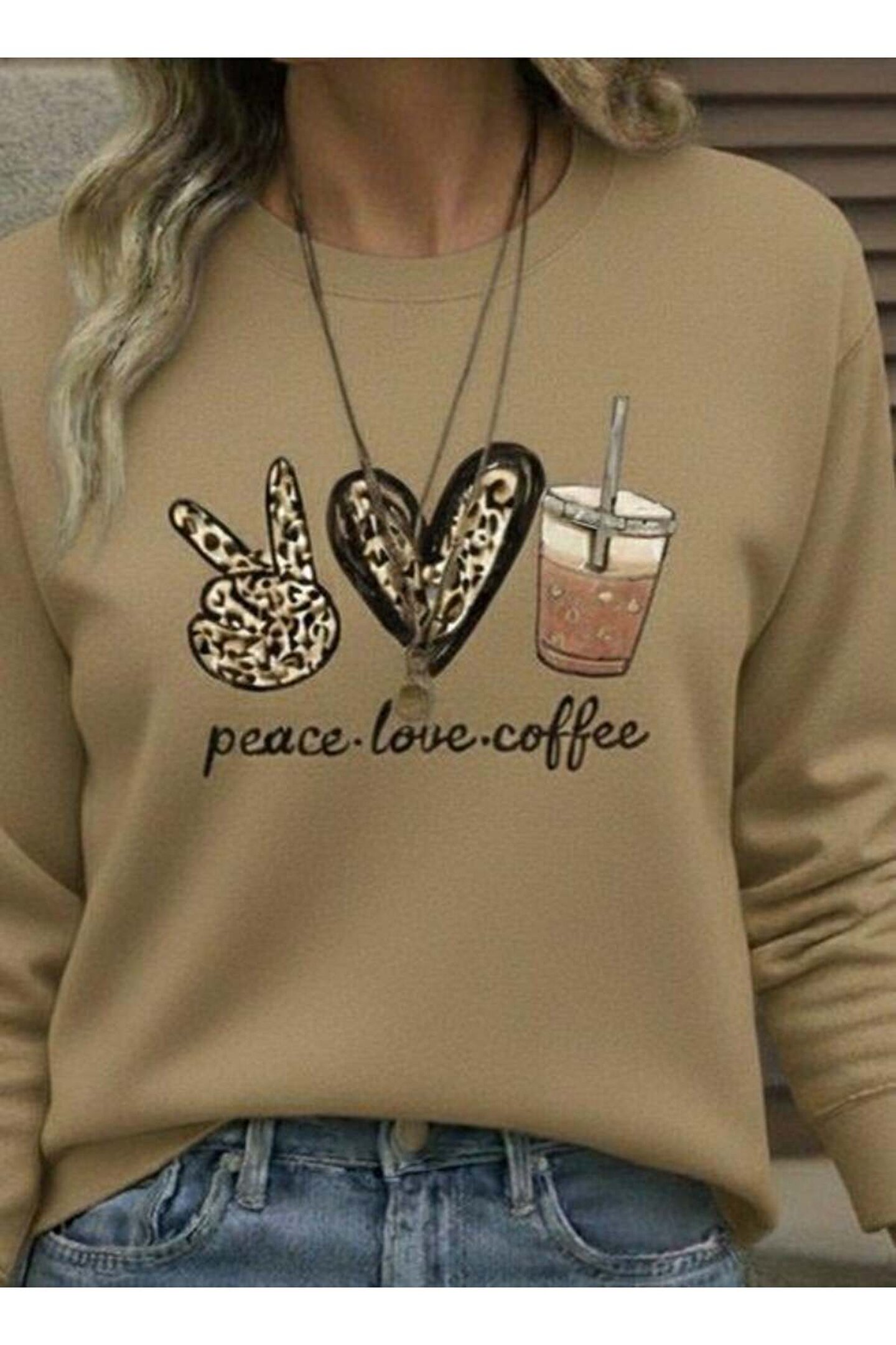 COjans Kadın Uzun Kollu Bisiklet Yaka Kalp Desenli Viskon Iki Iplik Bluz