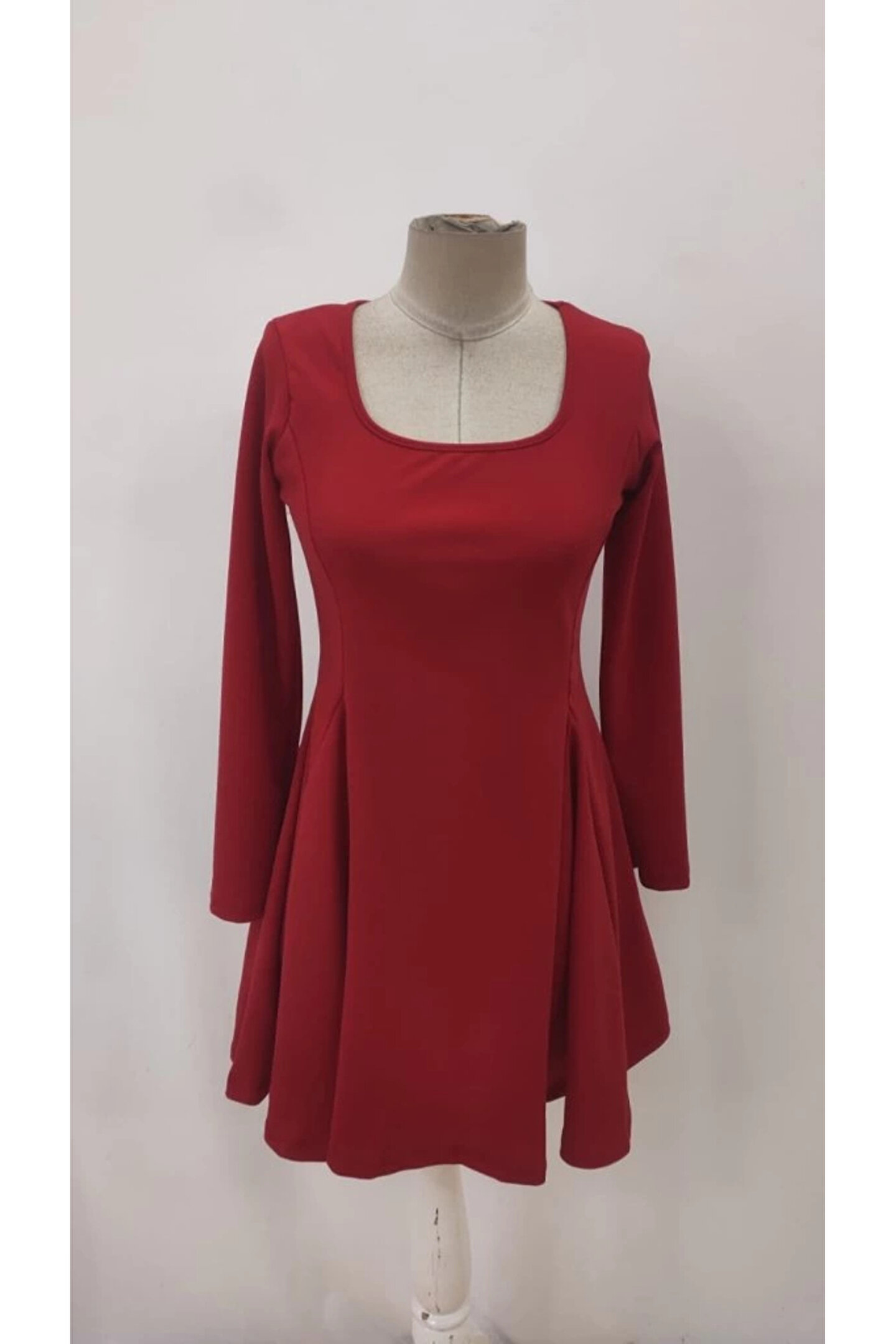 Kadın Uzun Kollu Kare Yakalı Mini Ithal Krep Elbise