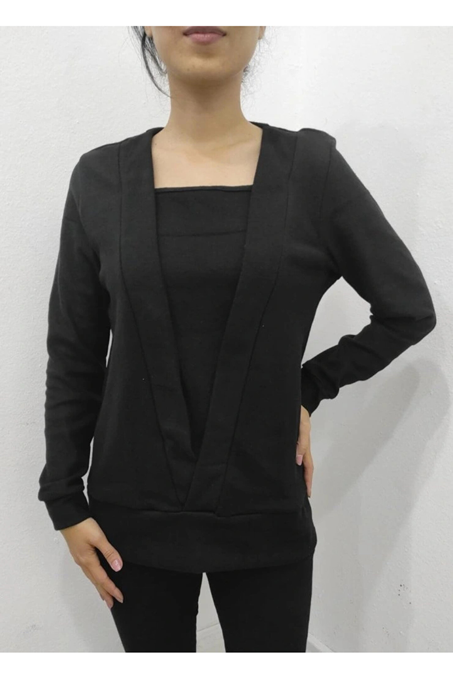 Kadın Uzun Kollu Kruvaze Yaka Kol Ve Etek Ucu Manşet Detay Yumoş Bluz