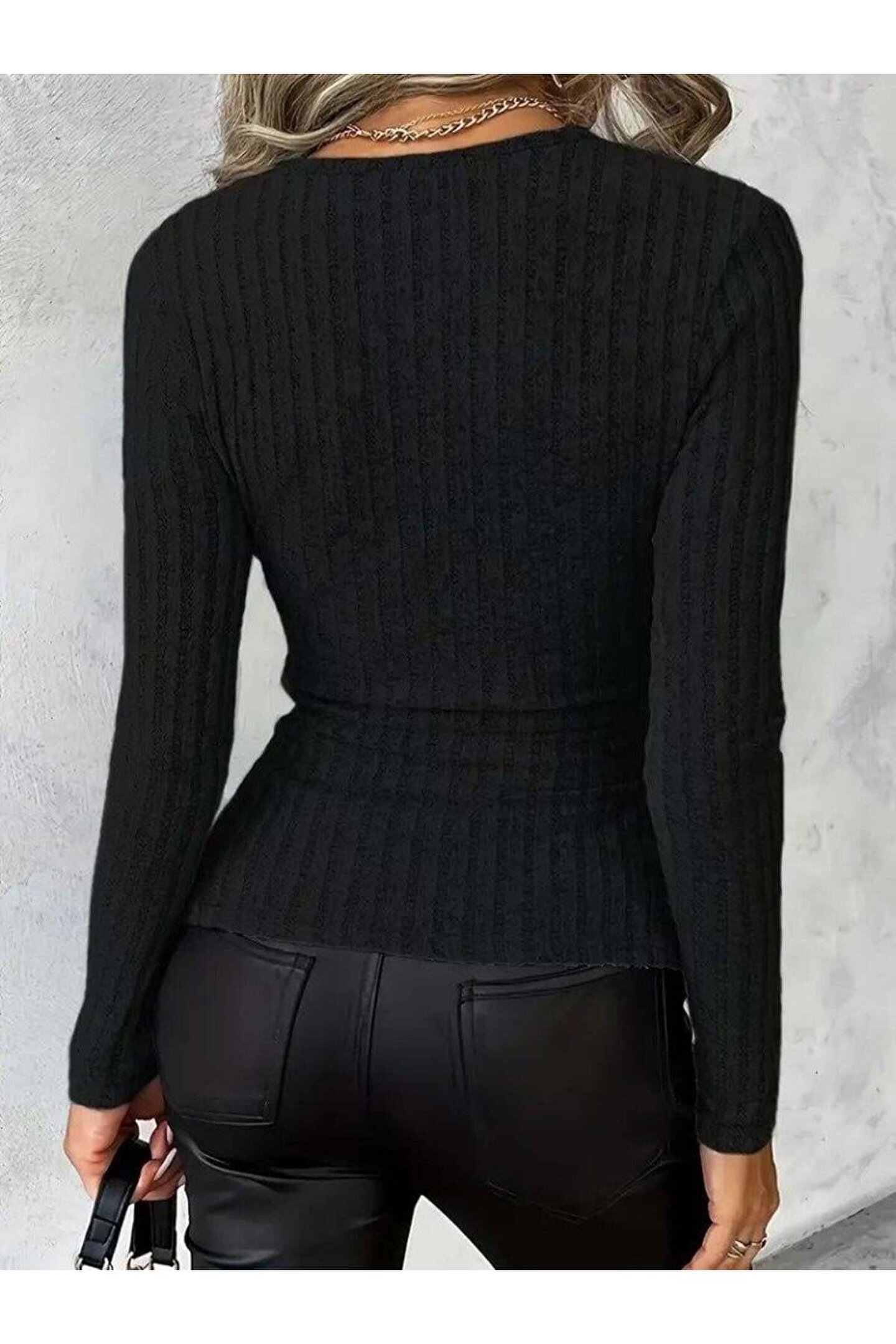 Kadın Uzun Kollu Kruvaze Yaka Yandan Düğme Detaylı şardonlu Kaşkorse Bluz