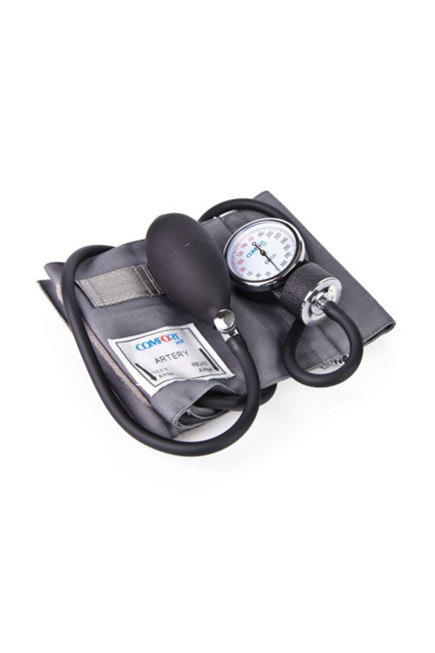 Comfort Plus DM; 100 Mekanik Stetoskoplu Tansiyon Aleti Pamuklu Bez Manşet 300 Mmhg Non; Stop Pın Manometer Dayanıklı Metal Kadran Harici Hafif Tekli Steteskop Krom Kaplama Pirinç Hava Boşaltım Valfı Steteskopu İle Birlikte;