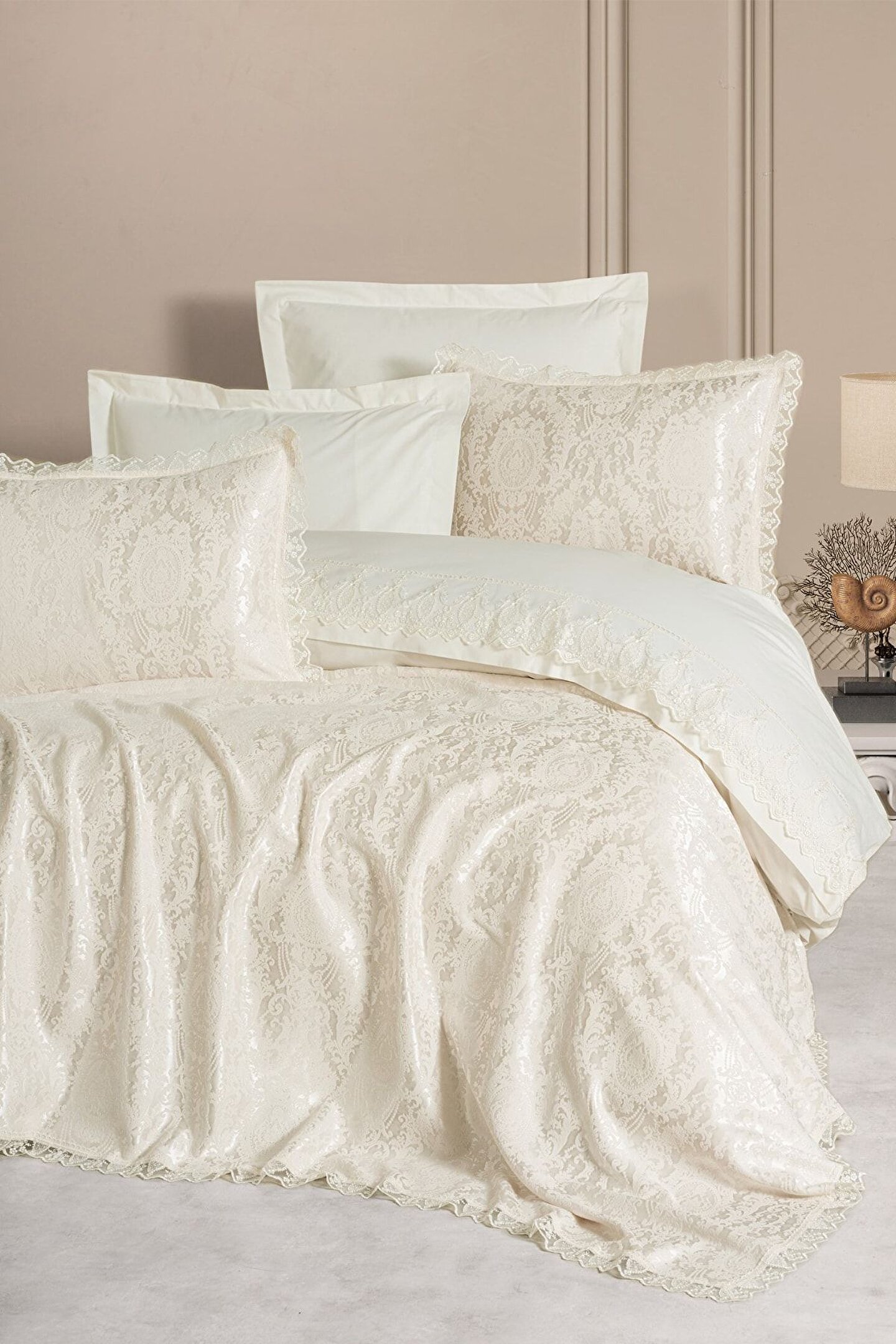 Çift Kişilik Pikeli Nevresim Takımı Silva Krem