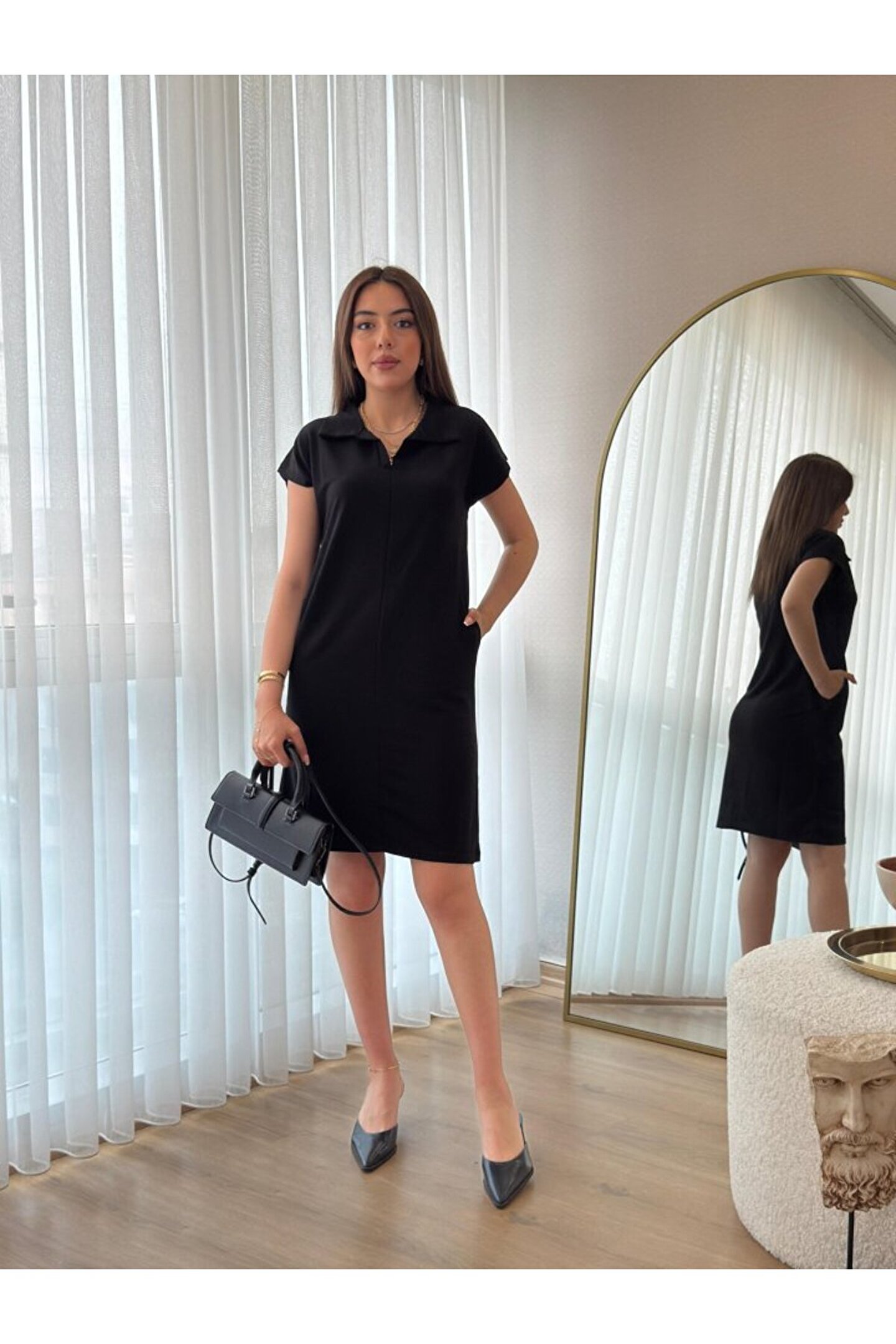 Kadın Kısa Kollu Yakalı Viskon Iki Iplik Elbise
