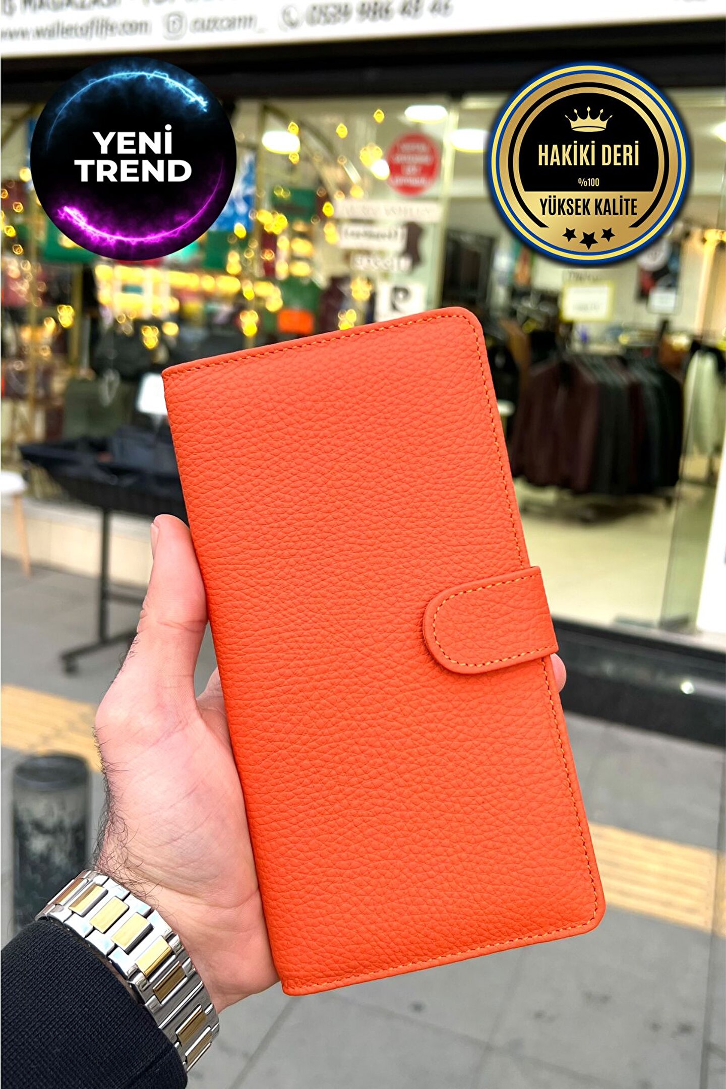 Creen Turuncu Unisex Hakiki Deri Telefon Gözlü Cüzdan ( Sevgililer Günü Hediyesi ) (ERKEK-KADIN)