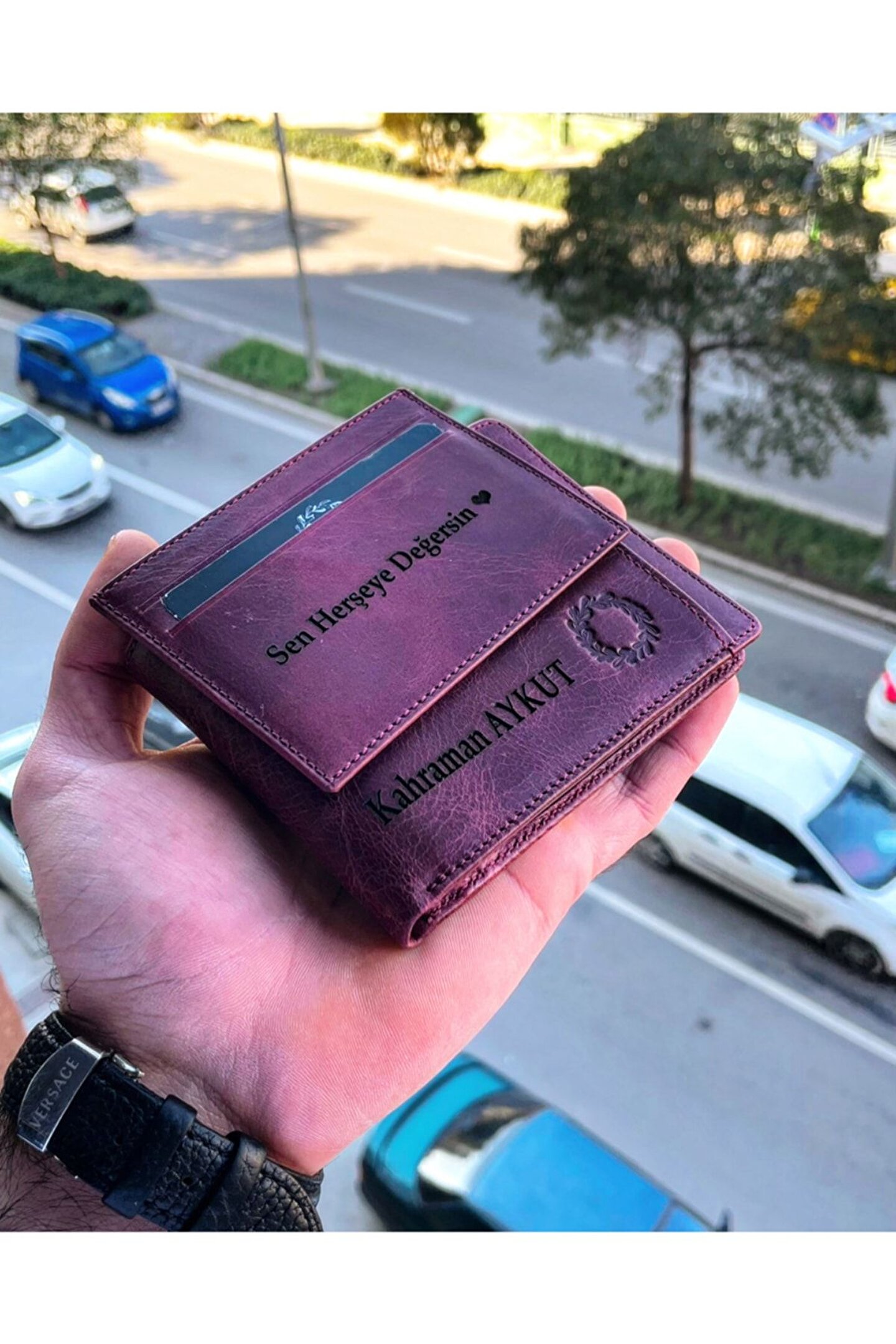 Isme Özel Hakiki Deri Bozuk Para Bölmeli Erkek Cüzdanı Kartlık Hediyeli