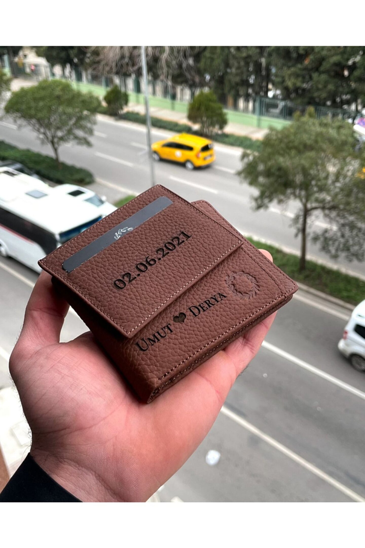 Isme Özel Hakiki Deri Bozuk Para Bölmeli Erkek Cüzdanı Kartlık Hediyeli