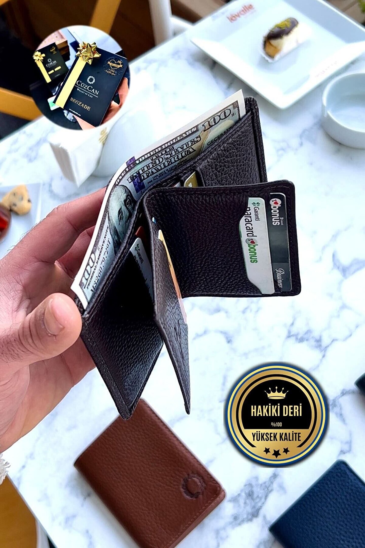 Kahverengi Dikey Kelebek Model Hakiki Deri Erkek Cüzdan Isme Özel Baskılı Sevgililer Günü Hediyesi