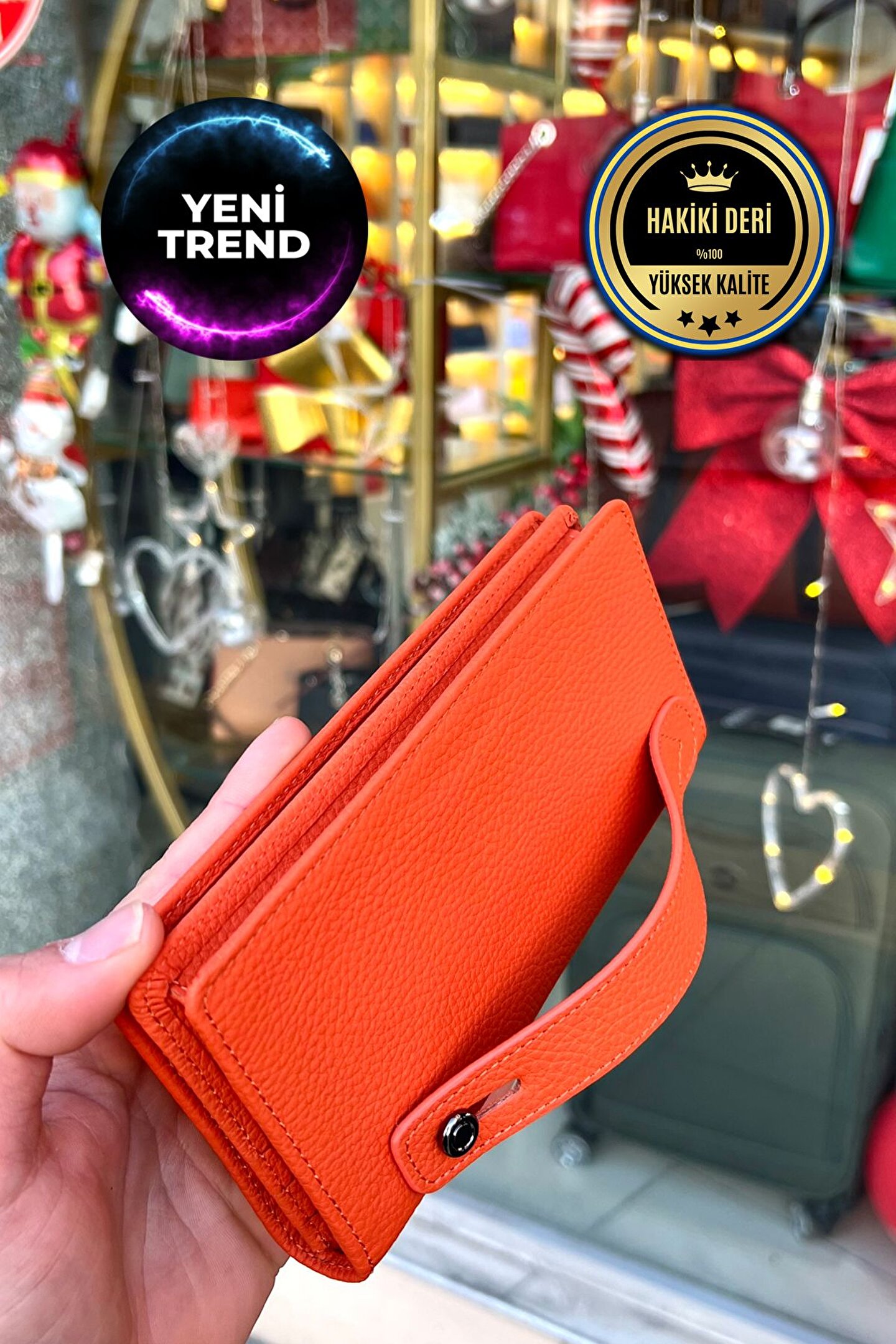 Montana Turuncu El Geçmeli Hakiki Deri Unisex Cüzdan