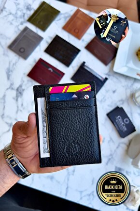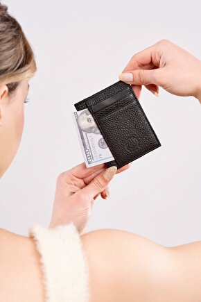 CüzCan Unisex Mia Siyah Gerçek Hakiki Deri Ultra Ince Dokulu Kartlık