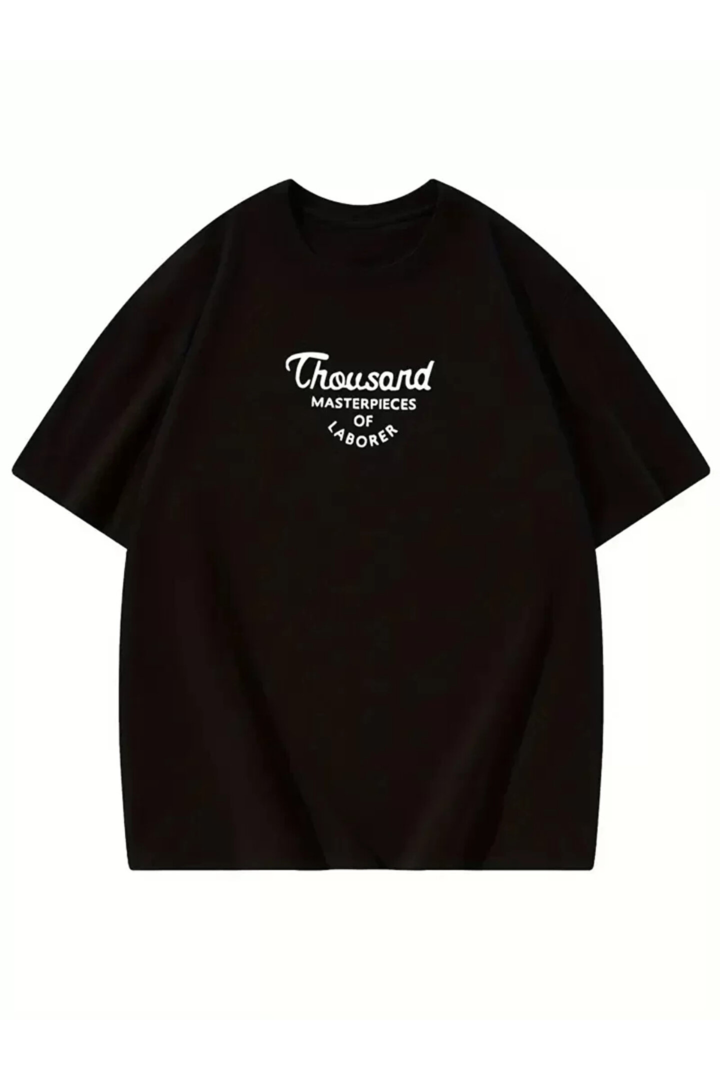 Thousand Ön Arka Baskılı Oversize Bisiklet Yaka T-shirt - Siyah