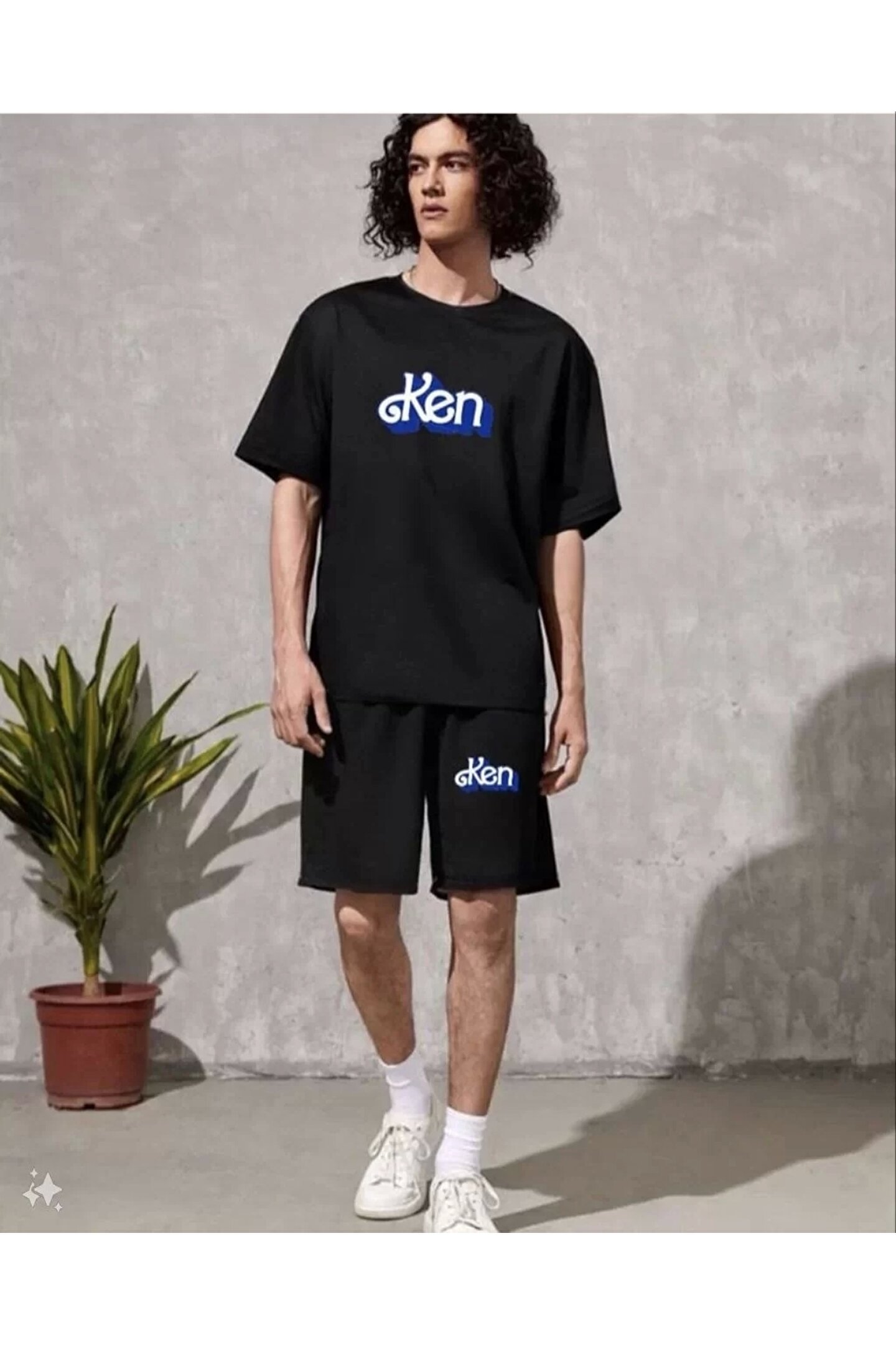 C&Z Collection Erkek Baskılı İkili Şort Takım - Siyah