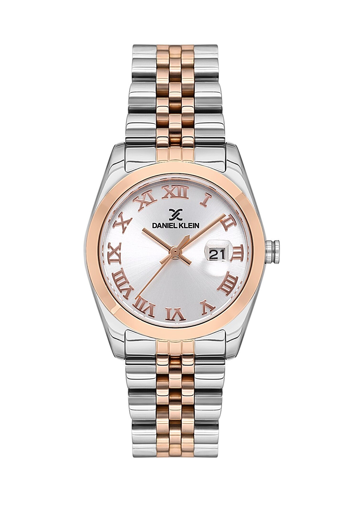 Sitemizde bulunan tüm Daniel Klein Ürün Modelleri Resmi Distribütör güvencesi altındadır.; Alacağınız bu ürün 2 yıl garanti kapsamındadır.; Siparişiniz orijinal garanti belgesi , faturası ve kutusu ile anlaşmalı kargo firması tarafından adresinize ücretsiz teslim edilecektir.; ÜRÜN BİLGİSİ KASA YAPISI KADRAN YAPISI KORDON YAPISI ÖZELLİKLER Cinsiyet:Kadın Marka:Daniel Klein Çalışma Tipi:Pilli Garanti:2 Yıl Kasa Çapı:29 mm Kasa Şekli:Yuvarlak Kasa Materyali:Metal Kasa Taşı:Yok Kasa Rengi:Gümüş Kadran Tipi:Analog Kadran Rengi:Gümüş Kadran Taşı:Yok Kordon Tipi:Çelik Kordon Rengi:Rose Gold Su Geçirmezlik:3 ATM Kronometre:Yok Takvim:Var Cam:Mineral Alarm:Yok