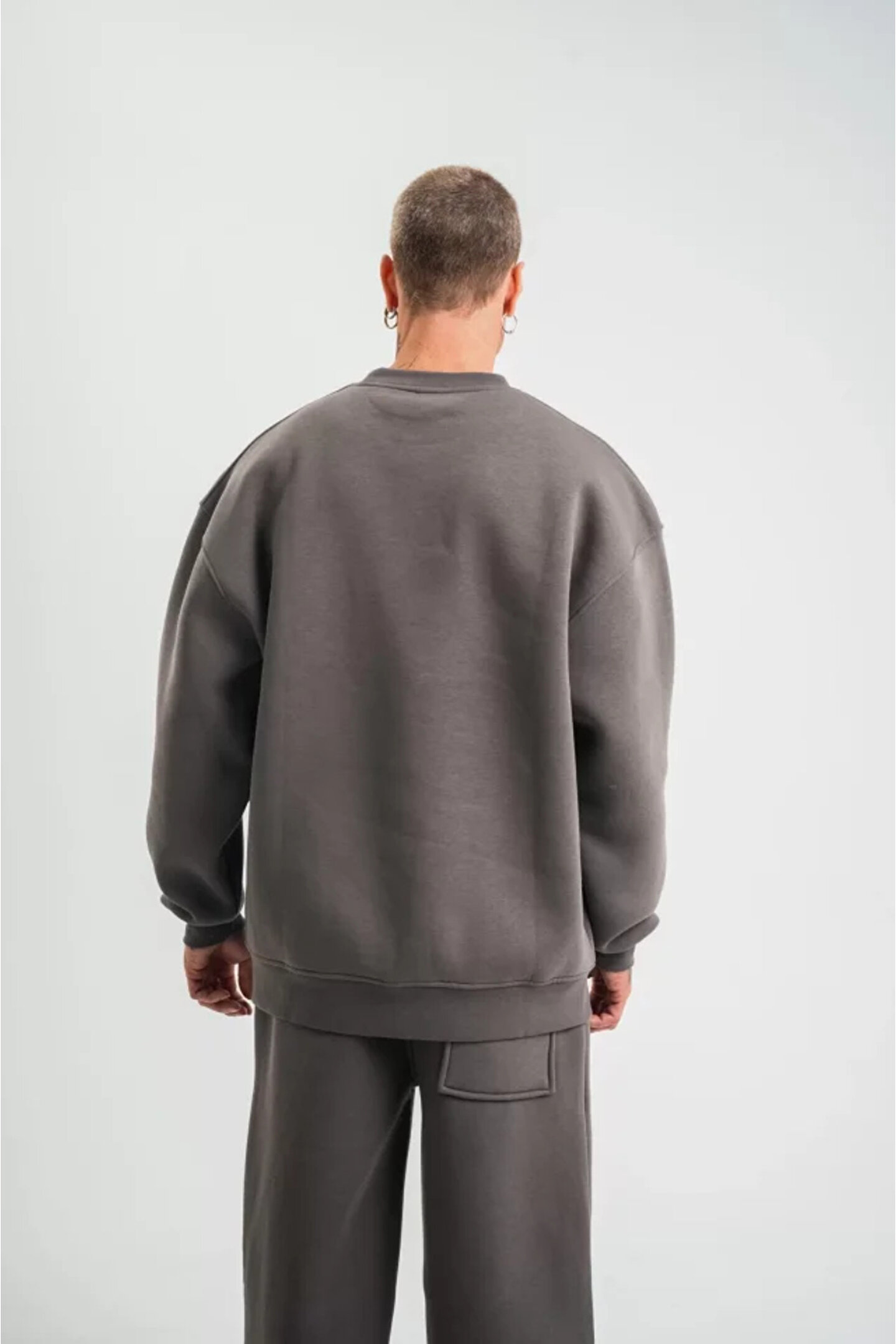 dase eyesof Uzun Kol Bisiklet Yaka Basic SweatShirt - Füme