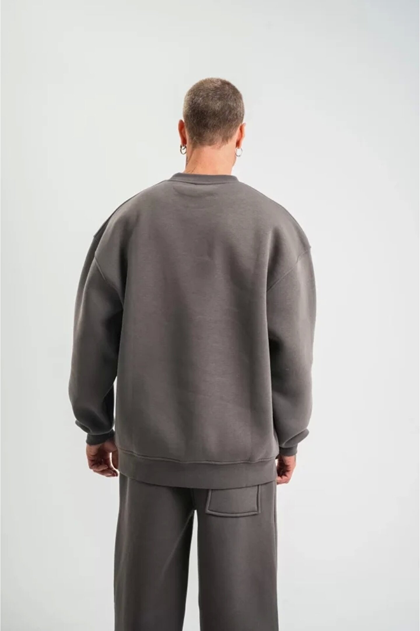 dase Uzun Kol Bisiklet Yaka Basic SweatShirt - Füme