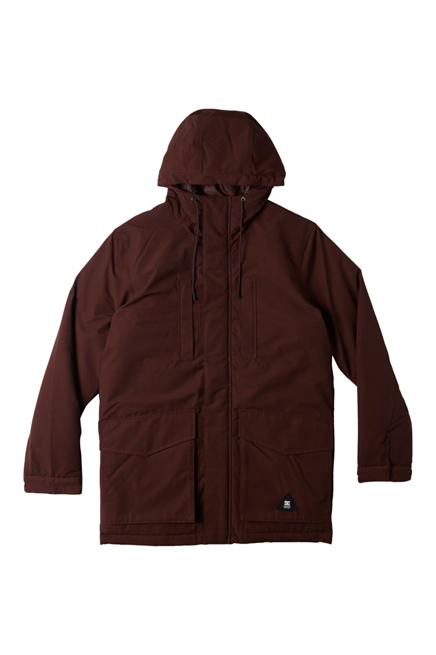 Branding: DC silicone triangle patch on lower front pocket