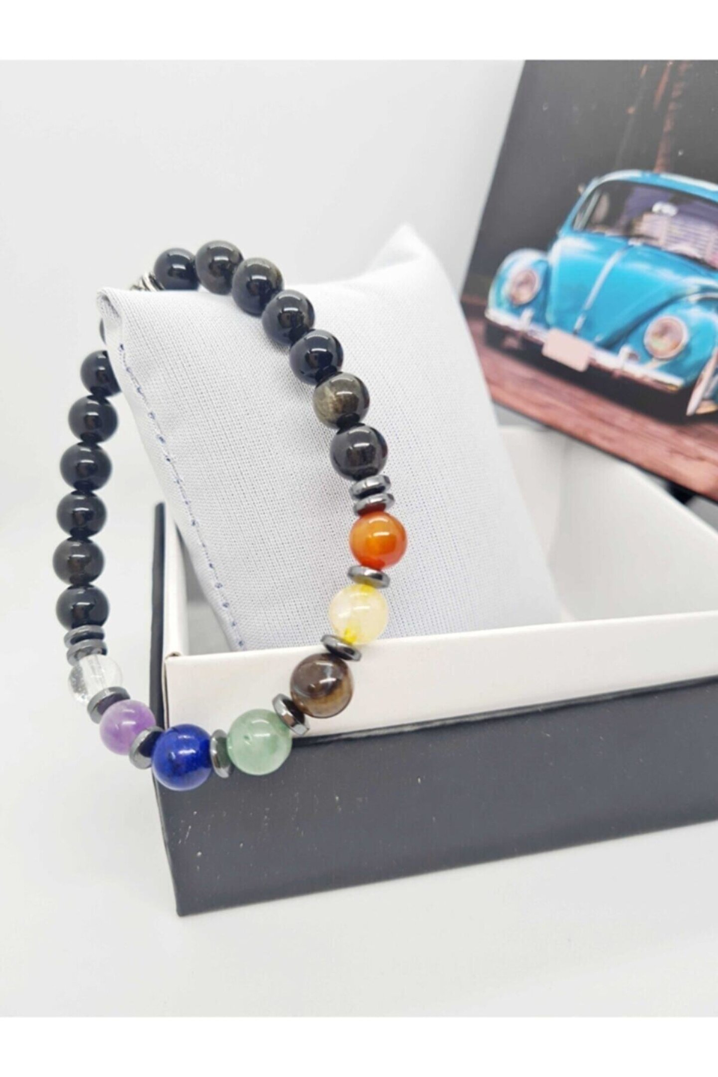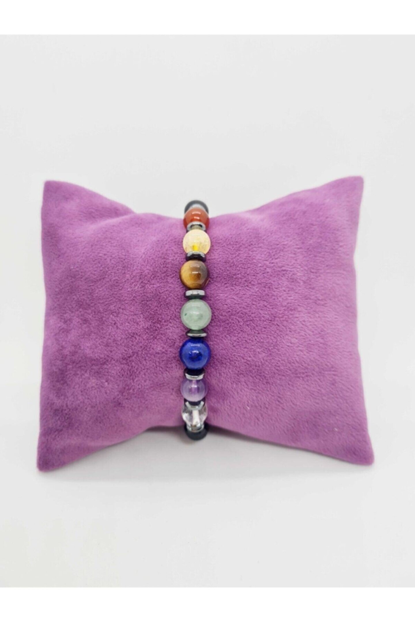 Kullanılan taşlar hitap ettiği çakralardaki tıkanıkların açılmasında etkili olduğu ulusal ve uluslararası literatürlerce ispatlanmıştır. Doğal taşların mistik enerjisiyle uyum ve ahenk içinde tasarlanmış olan 7 Çakra bilekliğinde kullanılan kristal kuvars,ametist,lapis lazuli,aventurin,kaplan gözü,sitrin,akik,hematit başlıca özellikler; Radyasyonu toplayarak vücuda yayılmasını engeller. Uyku Sorunu , Cilt Hastalıkları , Yaşama sevinci , Psikolojik rahatsızlıklar , Para, Kronik Yorgunluk , Nazar (olumsuz enerji) ve Hafıza gücü
