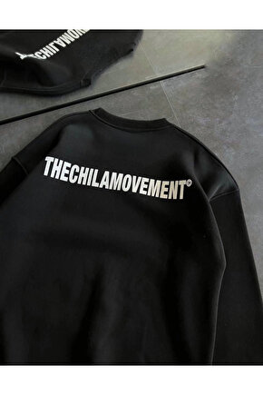 Kışlık Bisiklet Yaka Oversize Baskılı SweatShirt - Siyah