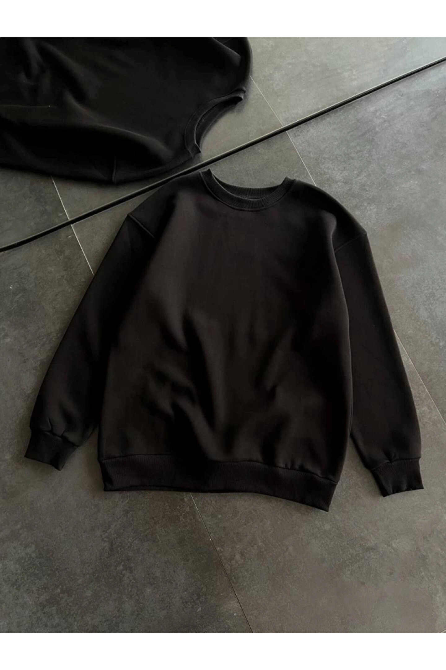 Kışlık Bisiklet Yaka Üç İplik Basic SweatShirt - Siyah
