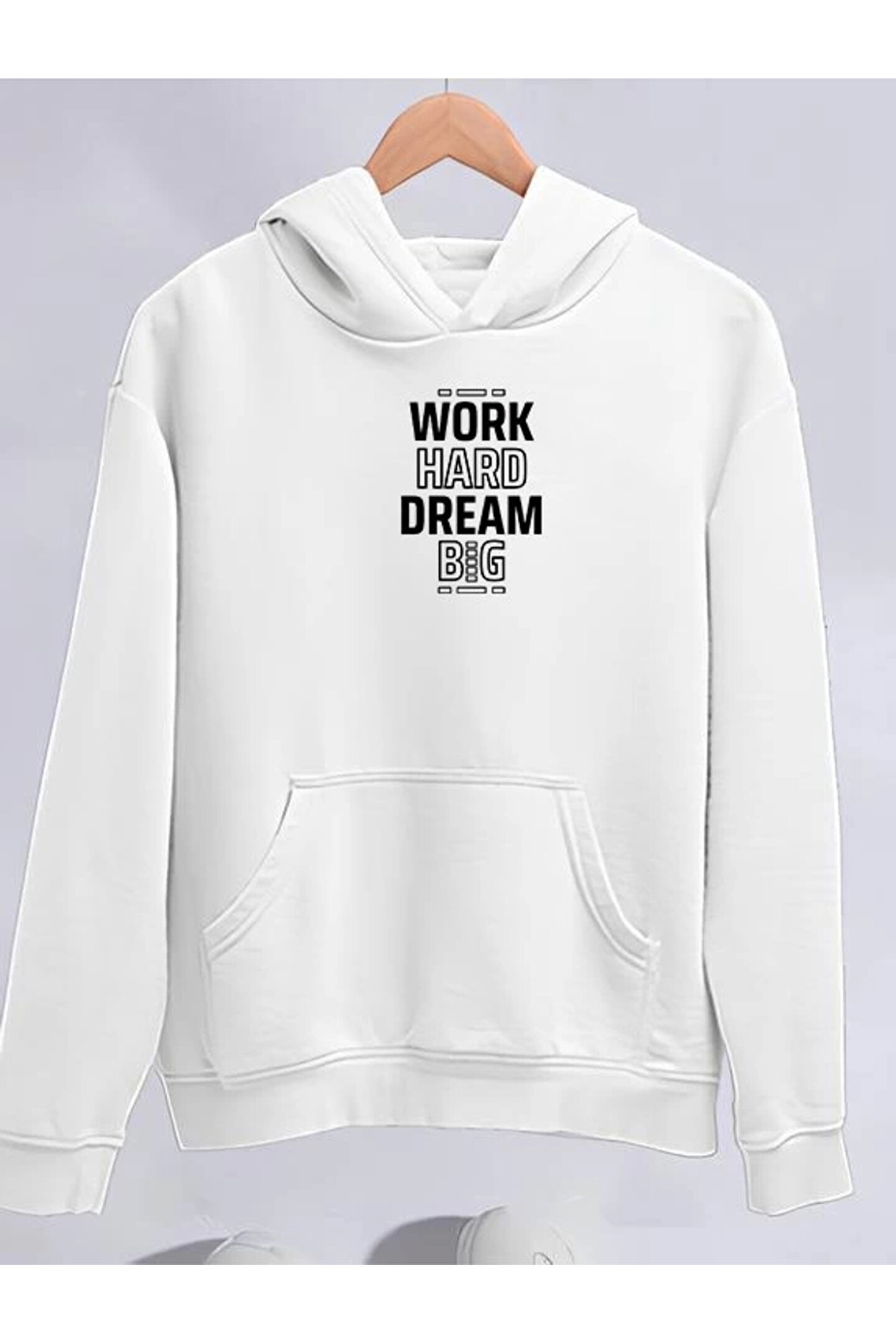 Kışlık Üç İplik Kapşonlu SweatShirt - Beyaz