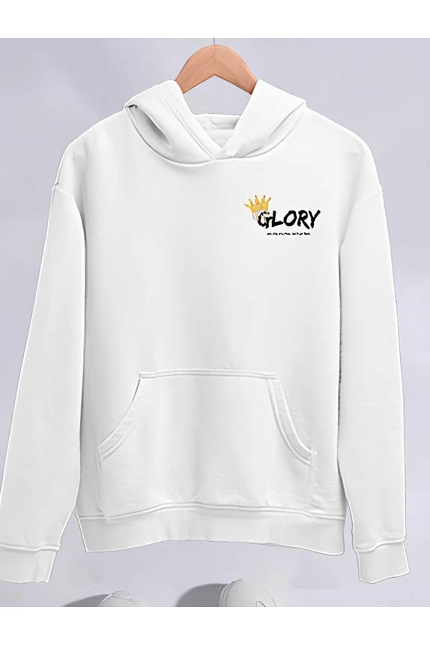 Kışlık Üç İplik Kapşonlu SweatShirt - Beyaz