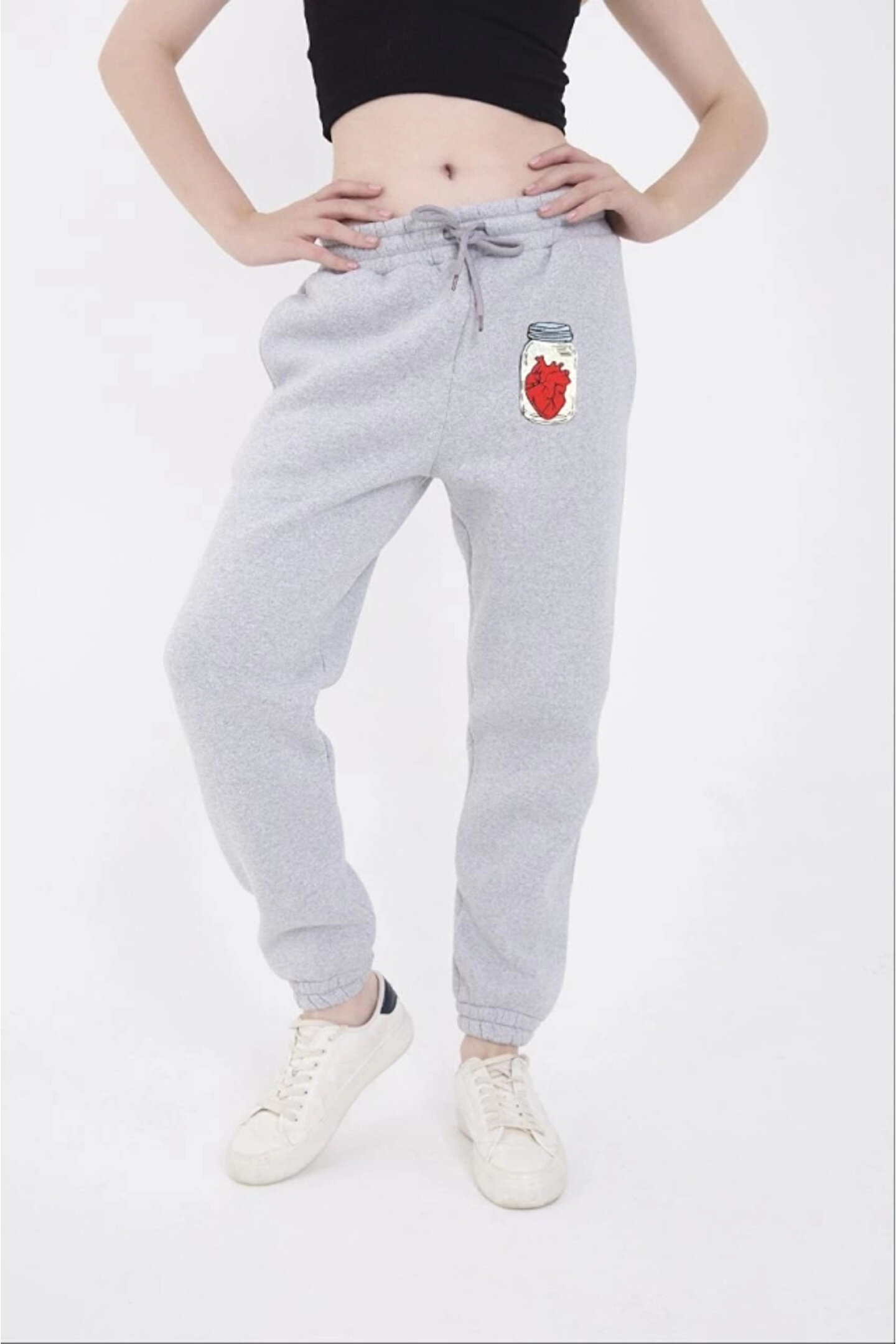 Üç İplik Lastikli Baskılı Eşofman Pantolon - Gri