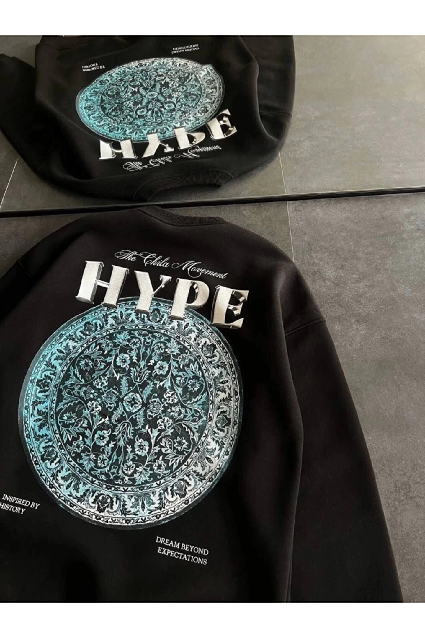 DEAG MDB Üç İplik Bisiklet Yaka Baskılı weathirt iyah