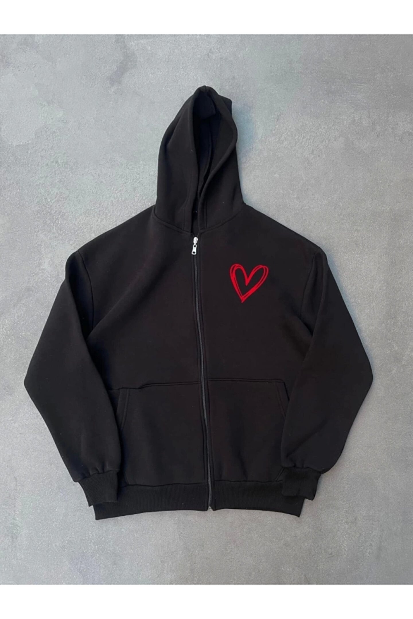 DEAG Üç İplik Baskılı Fermuarlı Kapşonlu Hırka iyah