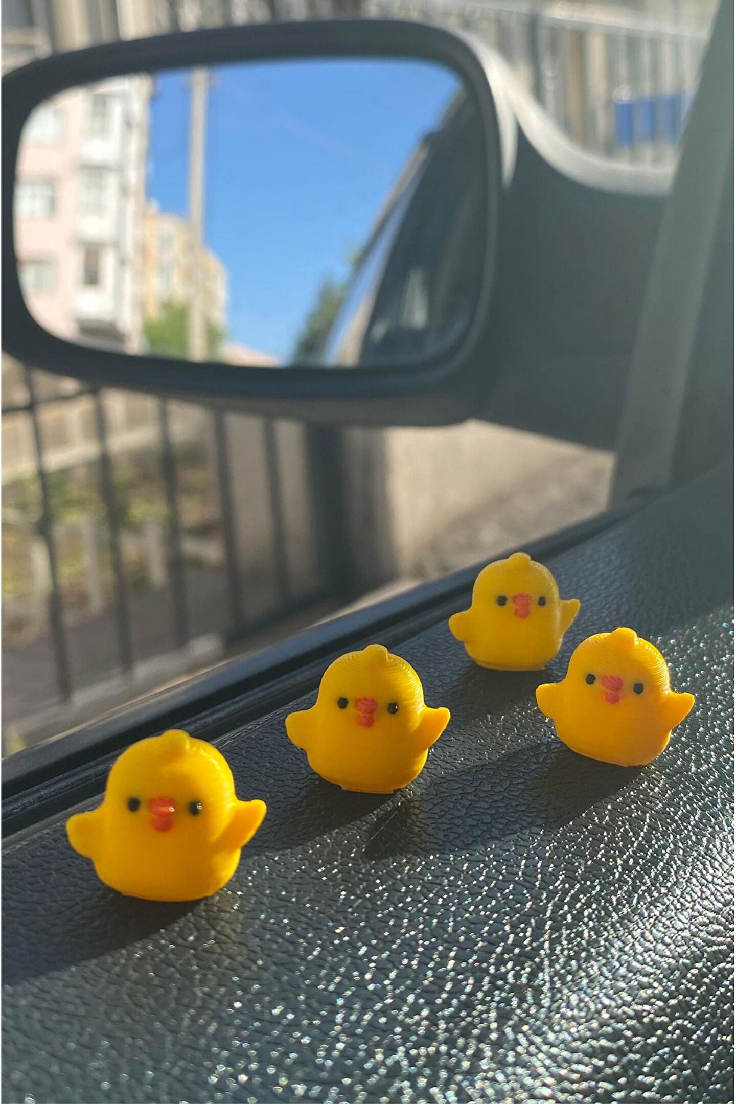 4Adet sert plastik malzemeden 3D yazıcı teknoloji ile hazırlanmış mini civciv figürüdür.; ; Araç içerisinde olabileceği gibi masa, dolap dekoru vb.; olarak kullanılabilir.; ; Dikiz aynasına, klima menfez çevresine, ekran ve direksiyon çevresinde kullanılabileceği gibi çocuk odası dekoru, çalışma masası dekoru olarak geniş bir kullanım alanına sahiptir.; ; Minik tatlı görünümleri ile dikkat çekicidir.; ; Çift taraflı bant ile gönderilmektedir.; ; Mini civciv figürü 1.5x2cm ebatlarındadır.; ;4 adet olarak gönderilmektedir.
