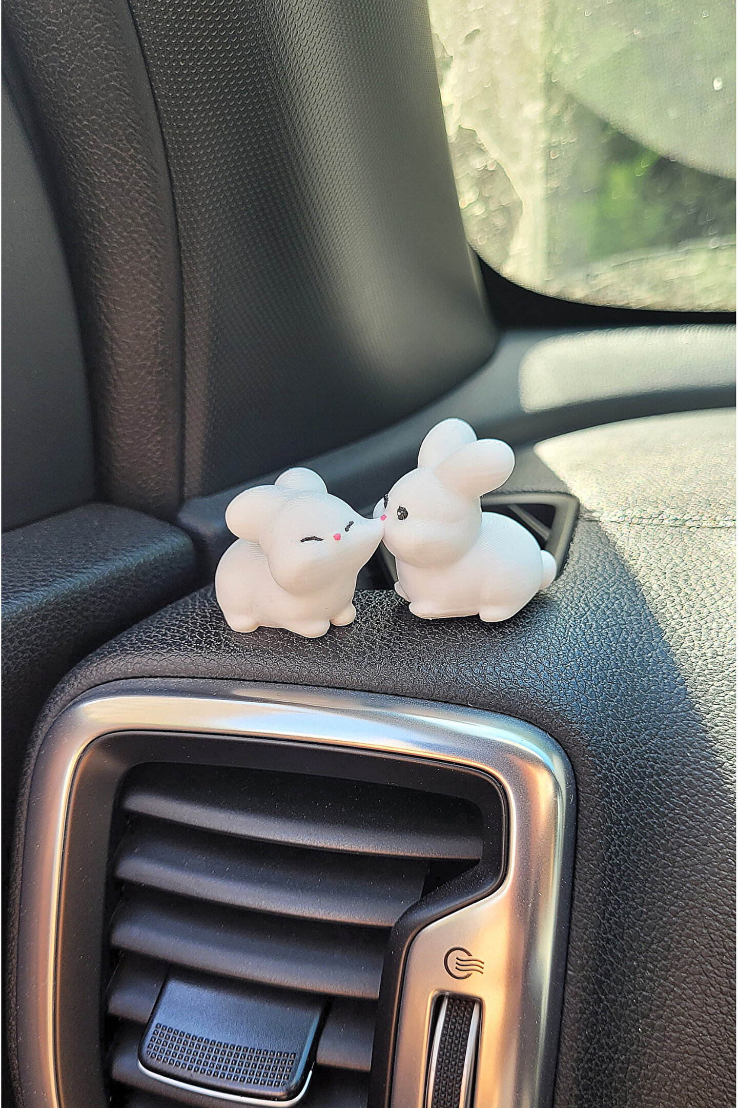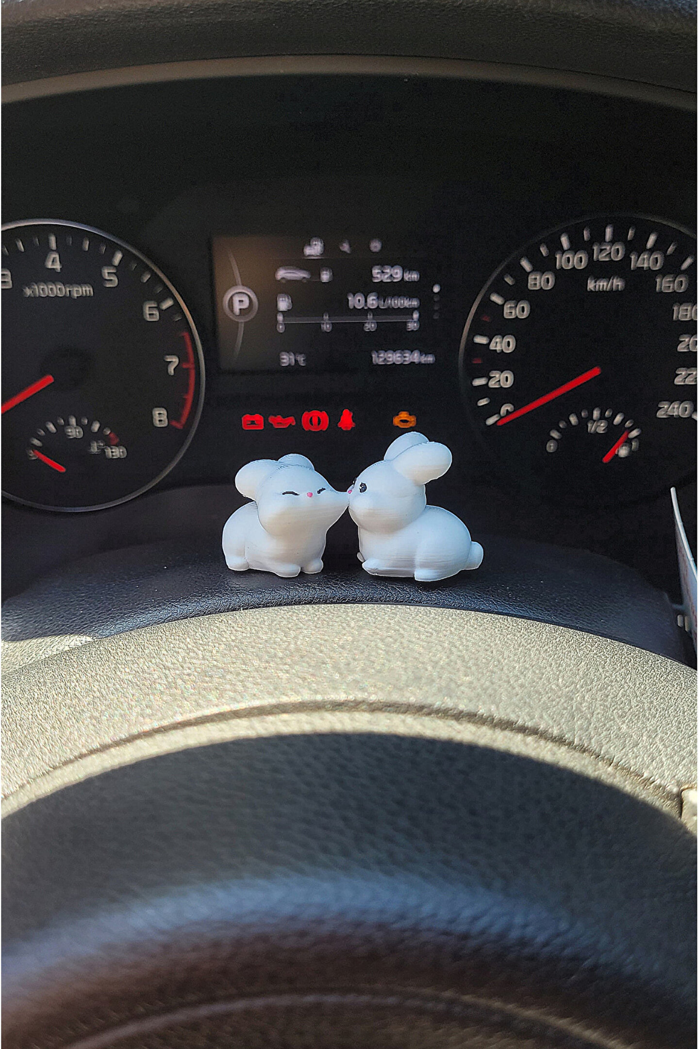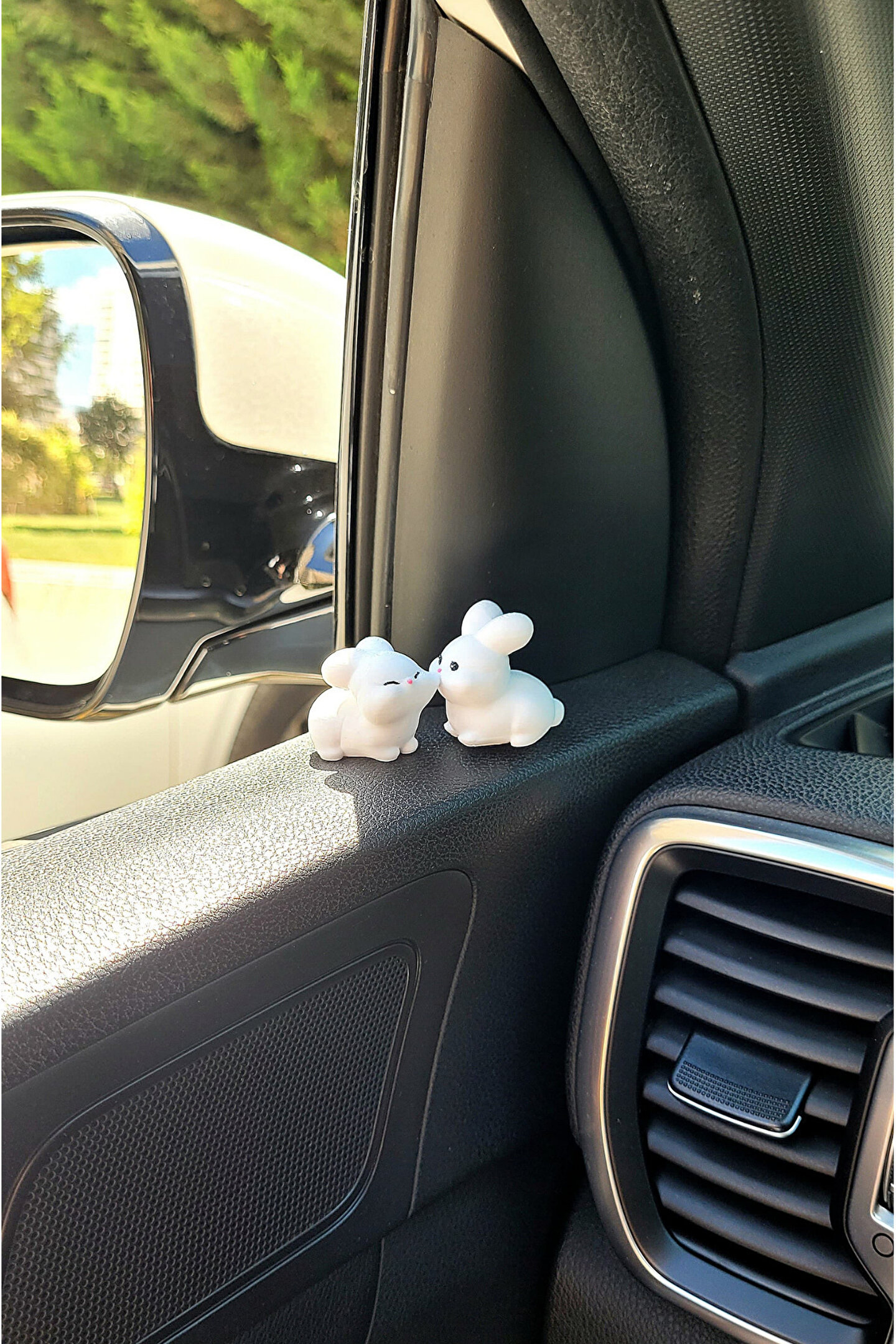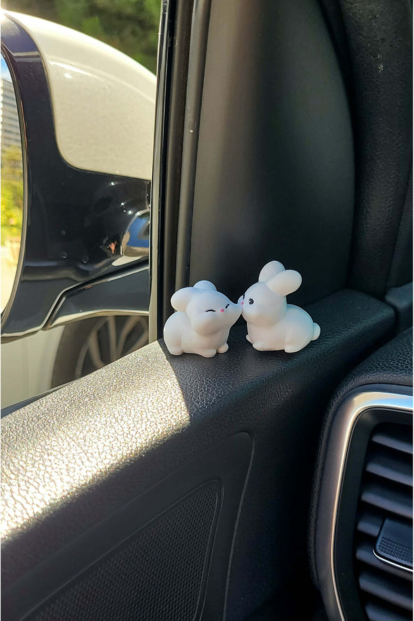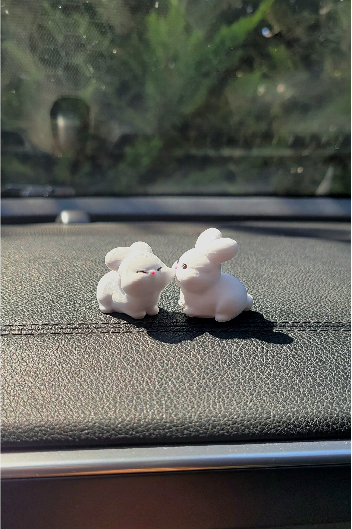 1 Adet sert plastik malzemeden 3D yazıcı teknoloji ile hazırlanmış mini tavşan çifti figürüdür.; ; Araç içerisinde olabileceği gibi masa, dolap dekoru vb.; olarak kullanılabilir.; ; Dikiz aynasına, klima menfez çevresine, ekran ve direksiyon çevresinde kullanılabileceği gibi çocuk odası dekoru, çalışma masası dekoru olarak geniş bir kullanım alanına sahiptir.; ; Minik tatlı görünümleri ile dikkat çekicidir.; ; Eşe, sevgiliye, arkadaşa hediye olarak alınabilir.; ; Çift taraflı bant ile gönderilmektedir.; ; 1 adet set olarak iki tavşan birbirine yapışık olarak gönderilmektedir.