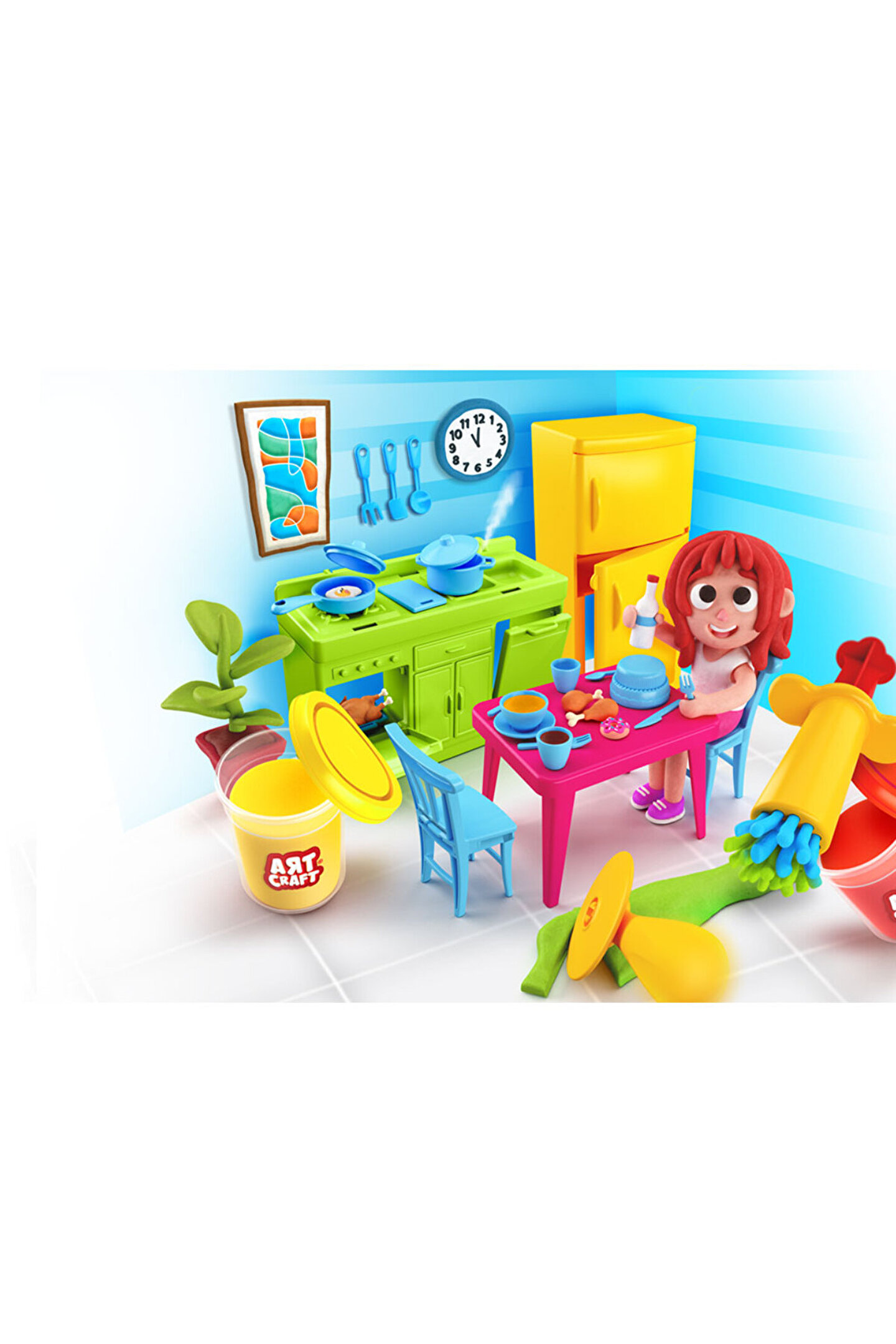 Ürün; 5 renk oyun hamuru ve birçok aksesuar içermektedir.; El becerileri kazandırır.; Hayal gücünü zenginleştirir.; Duyuları geliştirir.; Öğrenmeyi pekiştirir.; Ürün; 3 yaş altı çocuklar için uygun değildir.; Sağlık testlerinden geçmiştir.; Yerli üretimdir.; Kutu ölçüsü: 37.5x26x7.5 cm