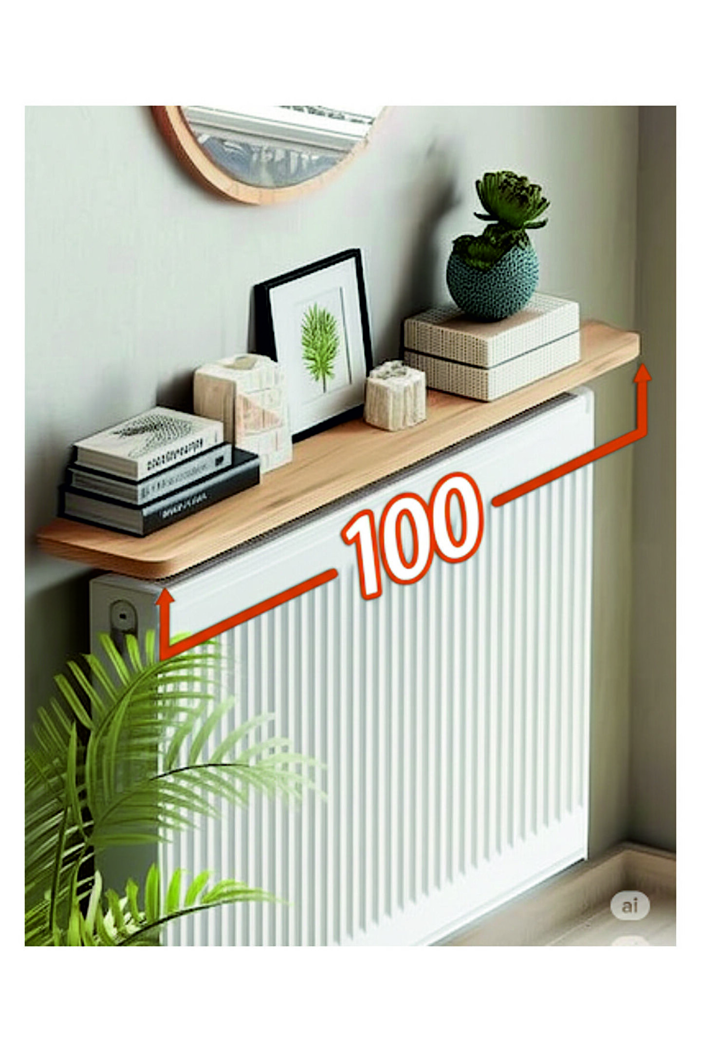 dedeler dekor 4 Köşe Oval Beyaz Petek Üstü Raf Dresuar Duvara Montajsız Kalorifer Peteği Üstü Raf 100x18cm Çam