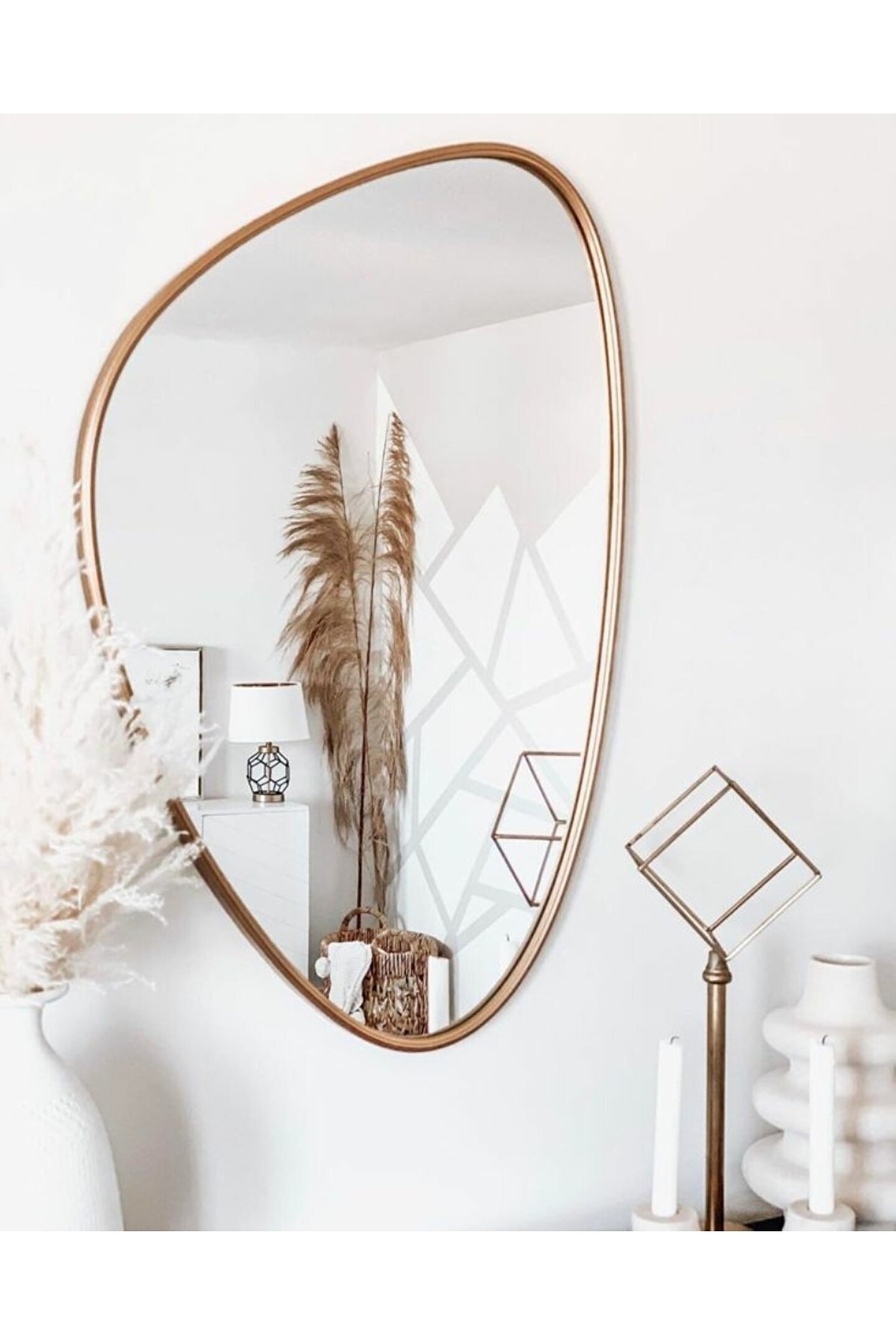 - Modern dekorasyonun vazgeçilmez parçası olan bu oval ayna, 70x40 cm boyutlarıyla mekanınıza şıklık katar.; - Mat altın rengiyle dikkat çeken bu duvar aynası, her türlü iç tasarım stiline kolayca uyum sağlar.; - Oval şekli sayesinde geleneksel ve modern çizgileri harmanlayarak evinizde zarif bir atmosfer yaratır.; - Cam malzemesi ile hem dayanıklı hem de estetik bir görünüm sunar; uzun süreli kullanım için idealdir.