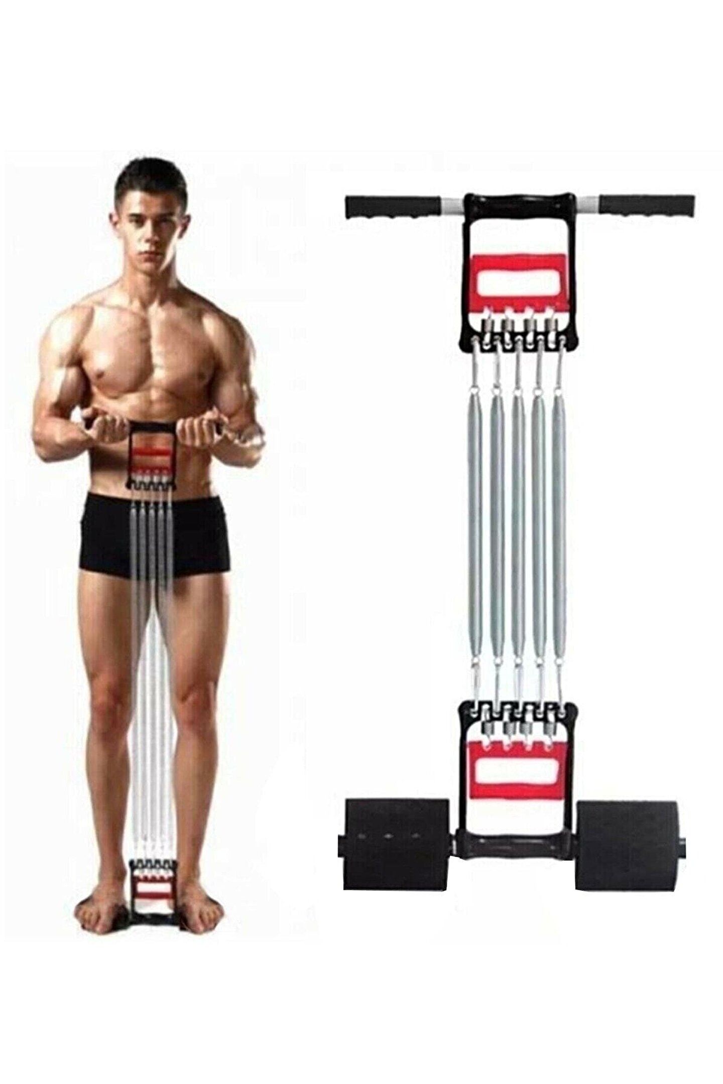 1 adet göğüs yayı (5 çelik yaylı 66 cm) ; el yayı fonksiyonlu ; ayak yayı fonksiyonlu ısteğe göre göğüs yayları azaltılabilir veya azami sertlik olan 5 yayla çalışılabilir. Aynı şekilde el yayları da azaltılıp arttırılabilir