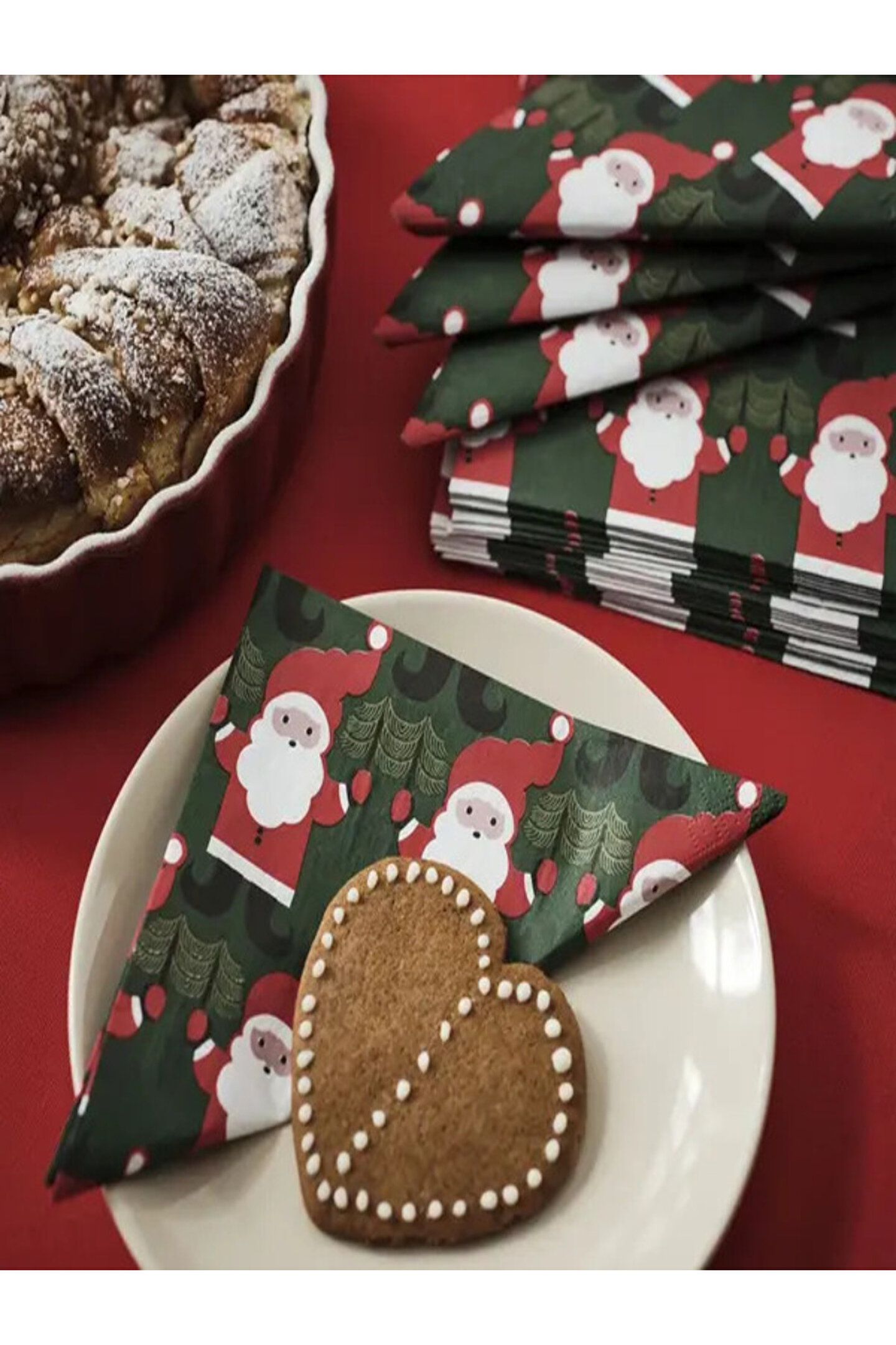 değer Noel Baba Deseni-yılbaşı, Parti Masa Dekorasyon 33x33 Cm, 3 Katlı Peçete 30 Adet Peçete
