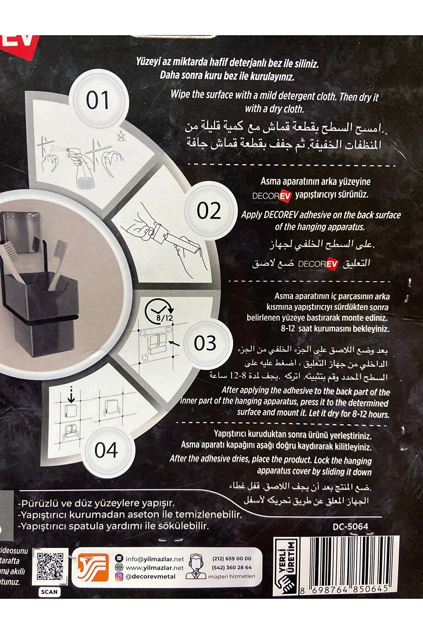 DEKOREV güçlü yapışkanlı siyah diş fırçalık dc-5064
