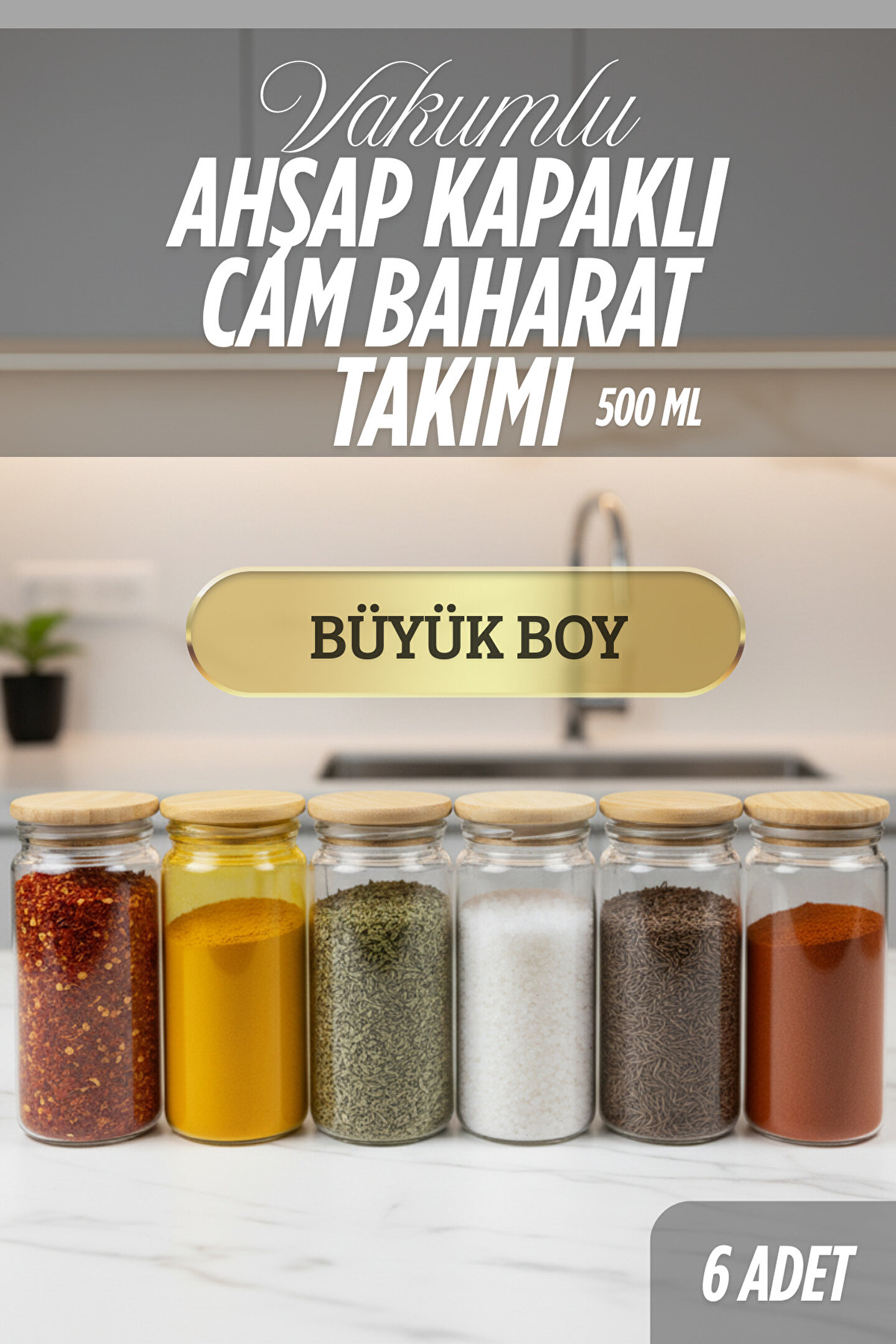 - 500 ml hacmiyle geniş kullanım alanı sunar, mutfakta ihtiyaç duyulan tüm baharatları saklayabilir.; - Gıda ile temas güvenli cam materyal kullanılarak üretilmiştir, sağlığınıza zarar vermez.; - Gıda temas sembolü ile birlikte gelen bu baharatlıklar, yiyeceklerinize güvenle ekleyebileceğiniz lezzetlerin garantisidir.; - TR menşei ile Türk malı olmanın gururunu yaşatır ve yerel üretim desteklenmiş olur.; - Ahşap kapakları sayesinde şık bir görünüm sunarken, baharatların tazeliğini korur ve kolayca açılıp kapanır.;