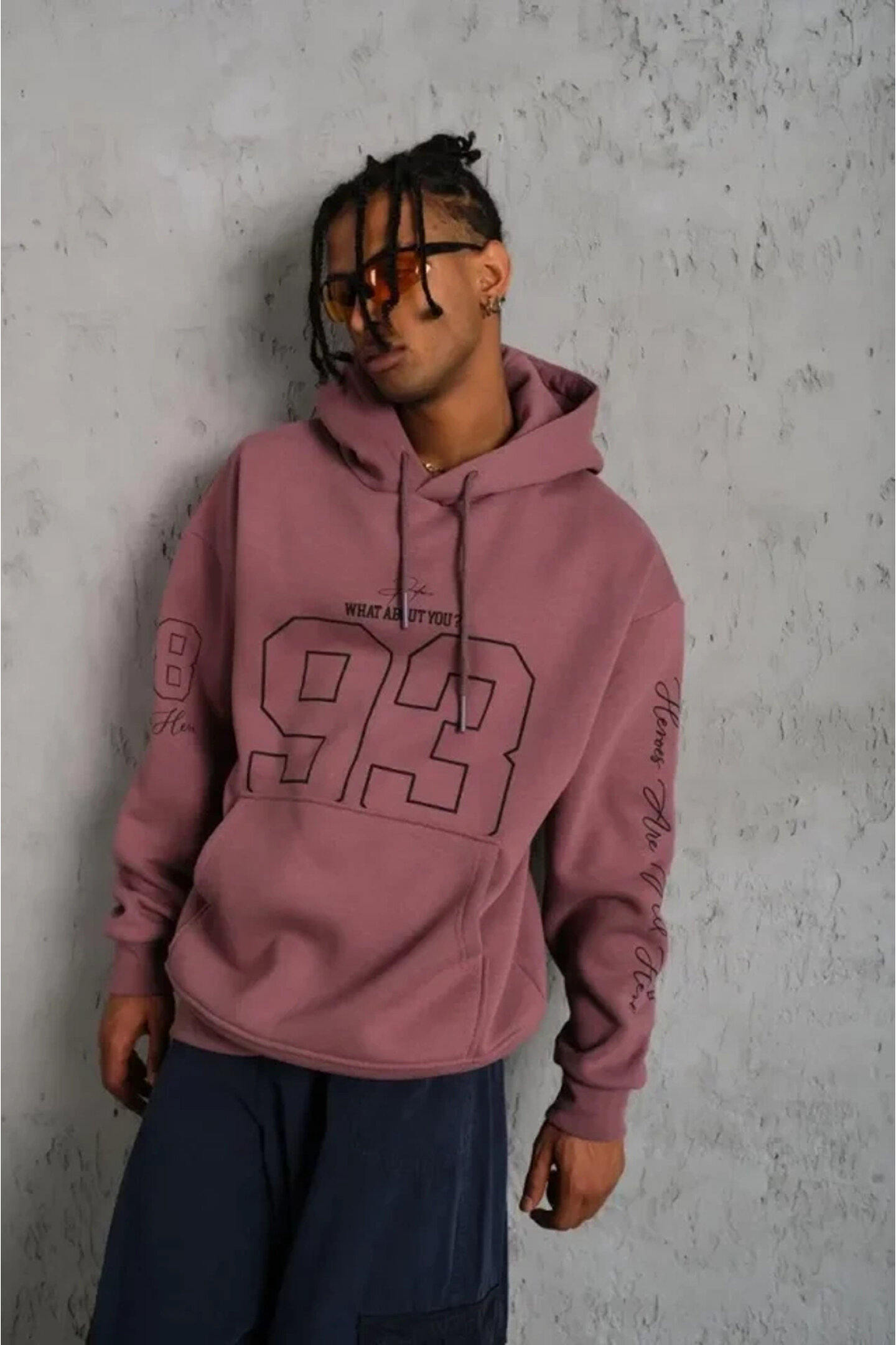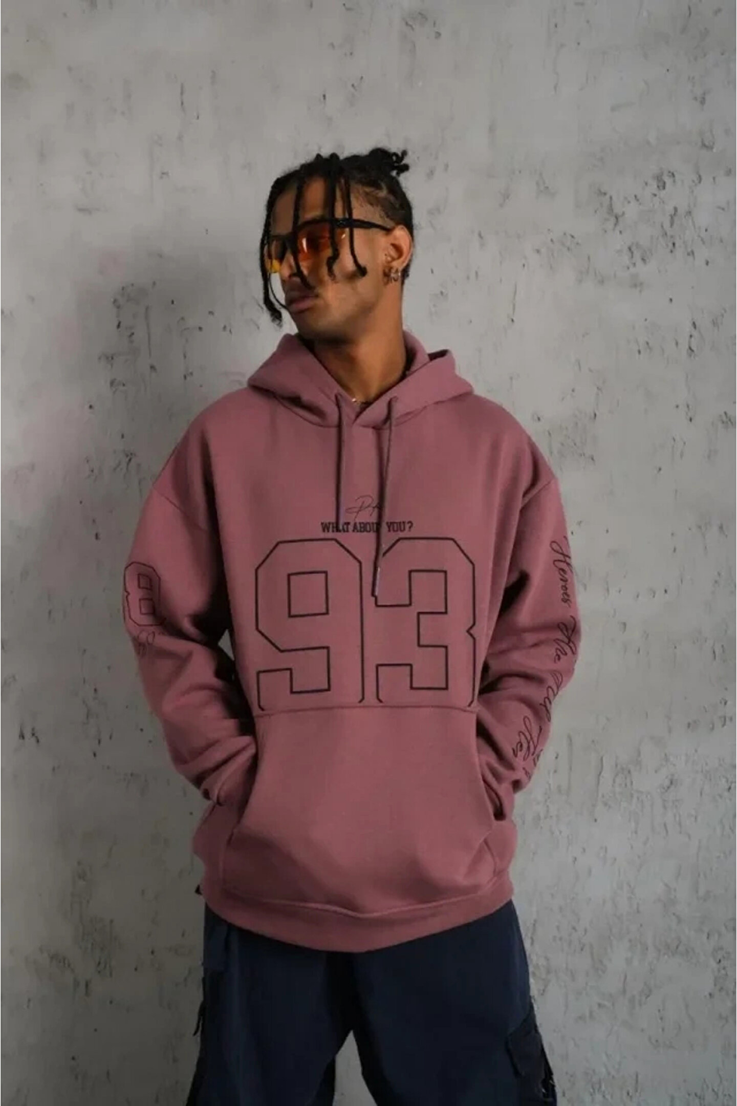 Denzy Erkek 93 Dijital Parça Baskılı Kapşonlu Sweat - Gül Kurusu