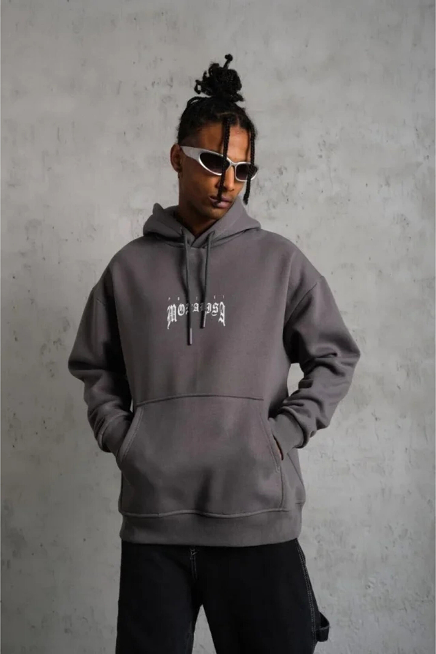 Erkek Baskılı Kapüşonlu Ve Kanguru Cepli Sweat- Gri
