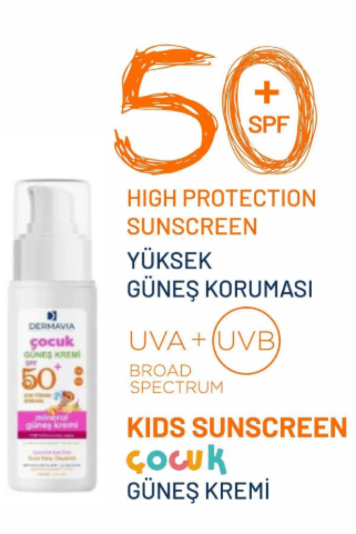 DERMAVIA SPF+50 GÜNEŞ KREMİ LEKELİ KARŞITI 50 SPF UVA ve UVB filtreleri sayesinde güneşin zararlı ışınlarını süzer.; Vitamin E serbest radikallere karşı korur ve güçlü antioksidan etki yaratır.; Panthenol hücre koruması oluşturur.; Bisabolol kuruluğa karşı nemlendirme sağlarken cildi rahatlatır.; KULLANIM ŞEKLİ: Güneşe çıkmadan 15 dakika önce uygulanır.; Güneş koruyucu ürünlerin her 3- 4 saatte bir uygulanması önerilir.; Yüzme, aşırı terleme ve kurulanma sonrasında tekrar uygulayınız.; DİKKAT: 11:00 ile 15:00 saatleri arası güneşe çıkmayınız.; Bebekleri ve küçük çocukları direkt güneş ışınlarına maruz bırakmayınız.; UYARILAR: Haricen Kullanılır.; Dış kullanıma uygundur.; Hasarlı ve bütünlüğü bozulmuş cilde uygulamayınız.; Göz ile temas ettirmeyiniz.; Temas halinde bol su ile yıkayınız.; Ciltte hassasiyet meydana geldiğinde kullanımı durdurunuz.; 3 Yaşın altındaki çocukların kullanımına uygun değildir, ambalajında ve oda sıcaklığında saklayınız.; Açık yara bulunan veya tahriş olmuş cilde uygulamayınız.; Beklenmeyen bir durum geliştiğinde doktorunuza başvurunuz.; Son kullanım tarihi geçmiş ürünleri kesinlikle kullanmayınız.; Güneş ürünleri açıldıktan sonra tüketilmesi gerekir.; Bir sonraki sene kullanılmamalıdır.; İÇİNDEKİLER: Aqua, Homosalate, Niacinamide, Bis-Ethylhexyloxyphenol Methoxyphenyl Triazine, Butyl Methoxydibenzoylmethane, Octocrylene, Butylene Glycol, Ethylhexyl Salicylate, Glyceryl Stearate, PEG-100 Stearate, Cetearyl Alcohol, Panthenol, Alpha-Arbutin, Bisabolol, Camellia Sinensis Extract, Magnesium Aluminum Silicate, Mentha Piperita Flower/Leaf/Stem Extract, Phenoxyethanol, Salicylic Acid, Titanium Dioxide, Zinc Gluconate, Azelaic Acid, Benzophenone-4, Allantoin, Disodium EDTA, Tocopheryl Acetate, Xanthan Gum