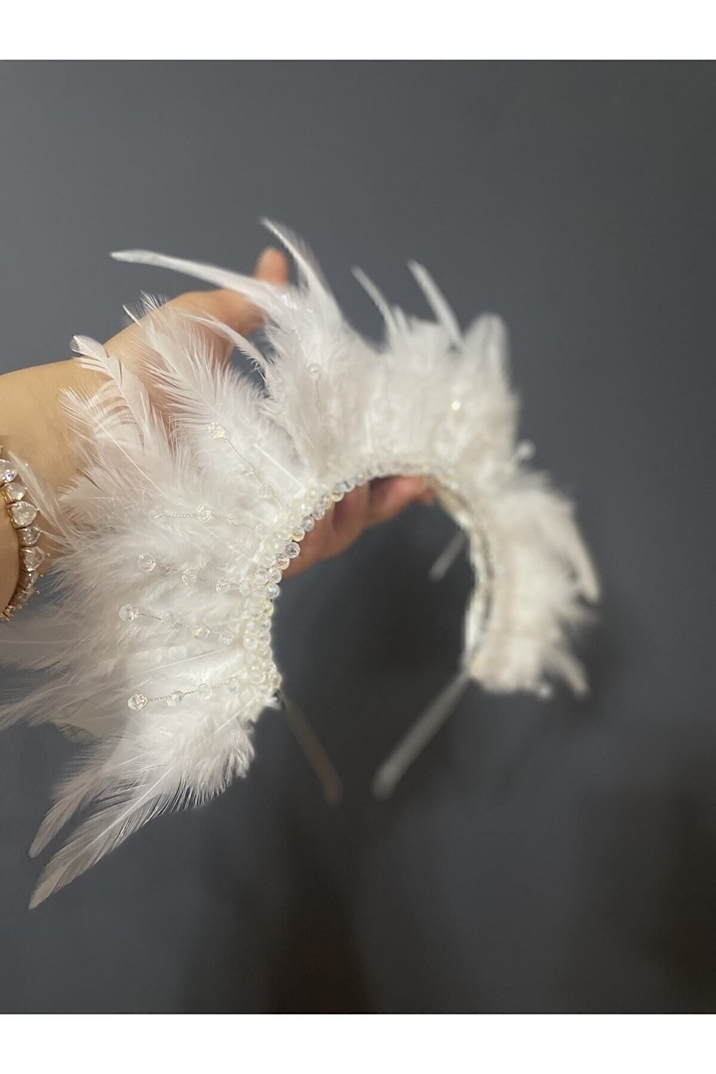Kristal taş işlemeli tasarımıyla göz alıcı bir parlaklık sunar ve her türlü özel gününüzde ışıltınızı ön plana çıkarır; Tüylü yapısı sayesinde zarif ve feminen bir görünüm sağlar, gelin, kına ve after party gibi etkinliklerde şıklığınızı tamamlar; Kristal taş kullanımı, taç üzerinde sofistike bir ışıltı yaratırken, detaylara verilen önemle dikkat çeker; Özel günlerinizde kendinizi daha özel hissetmenizi sağlayacak bu taç, zarafetiyle tüm dikkatleri üzerinize çeker;